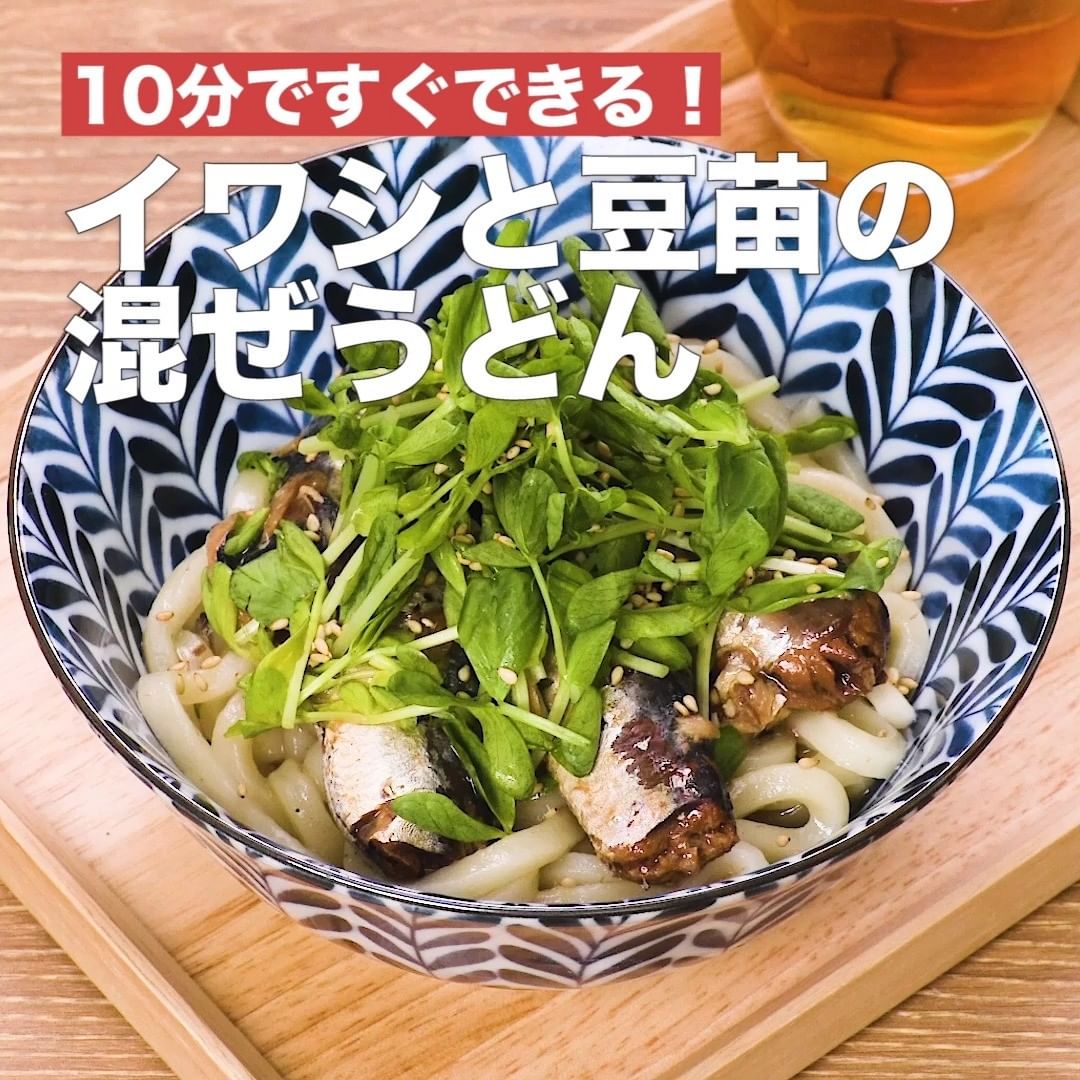 ⑥<10分ですぐできる!イワシと豆苗の混ぜうどん>