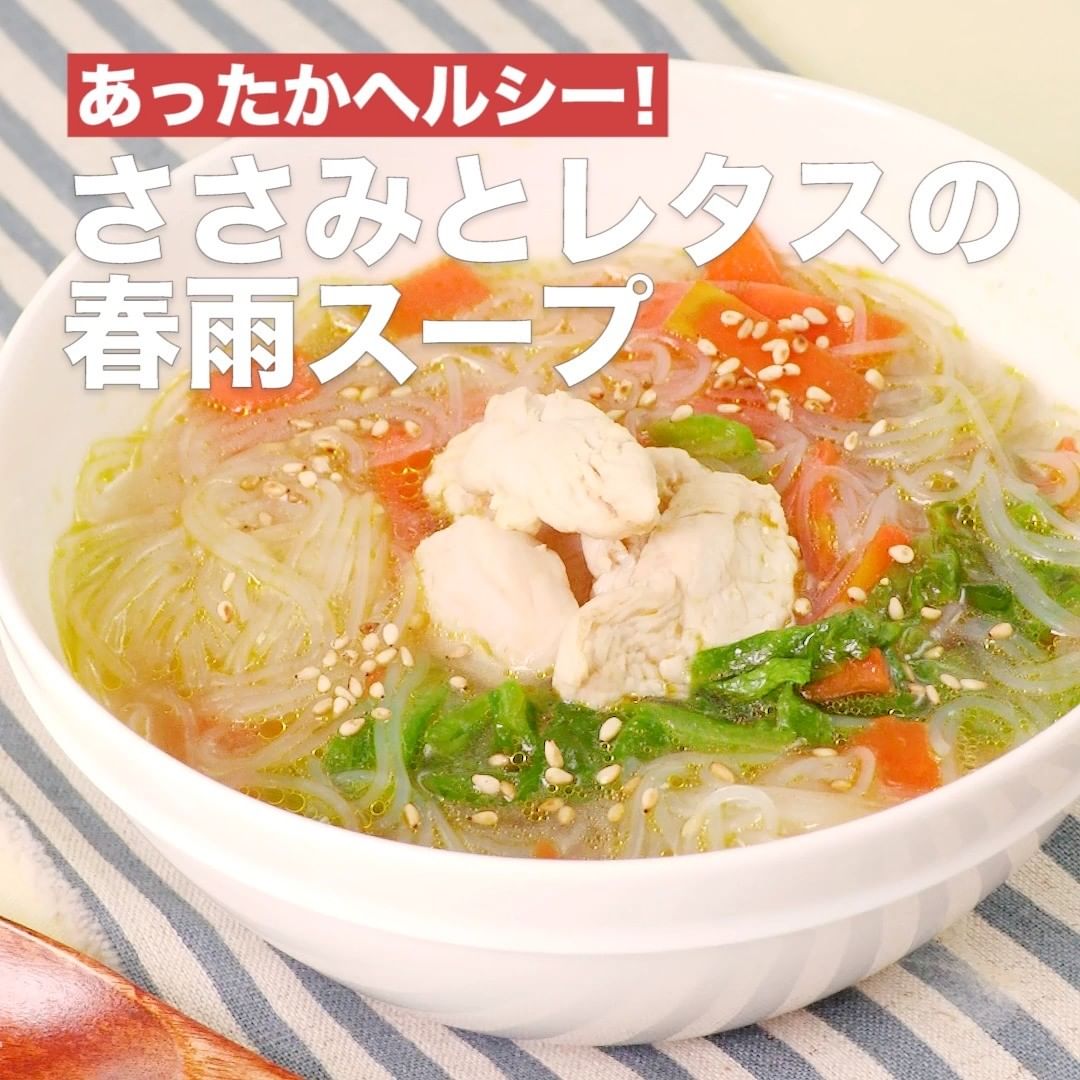 ①<あったかヘルシー!ささみとレタスの春雨スープ>