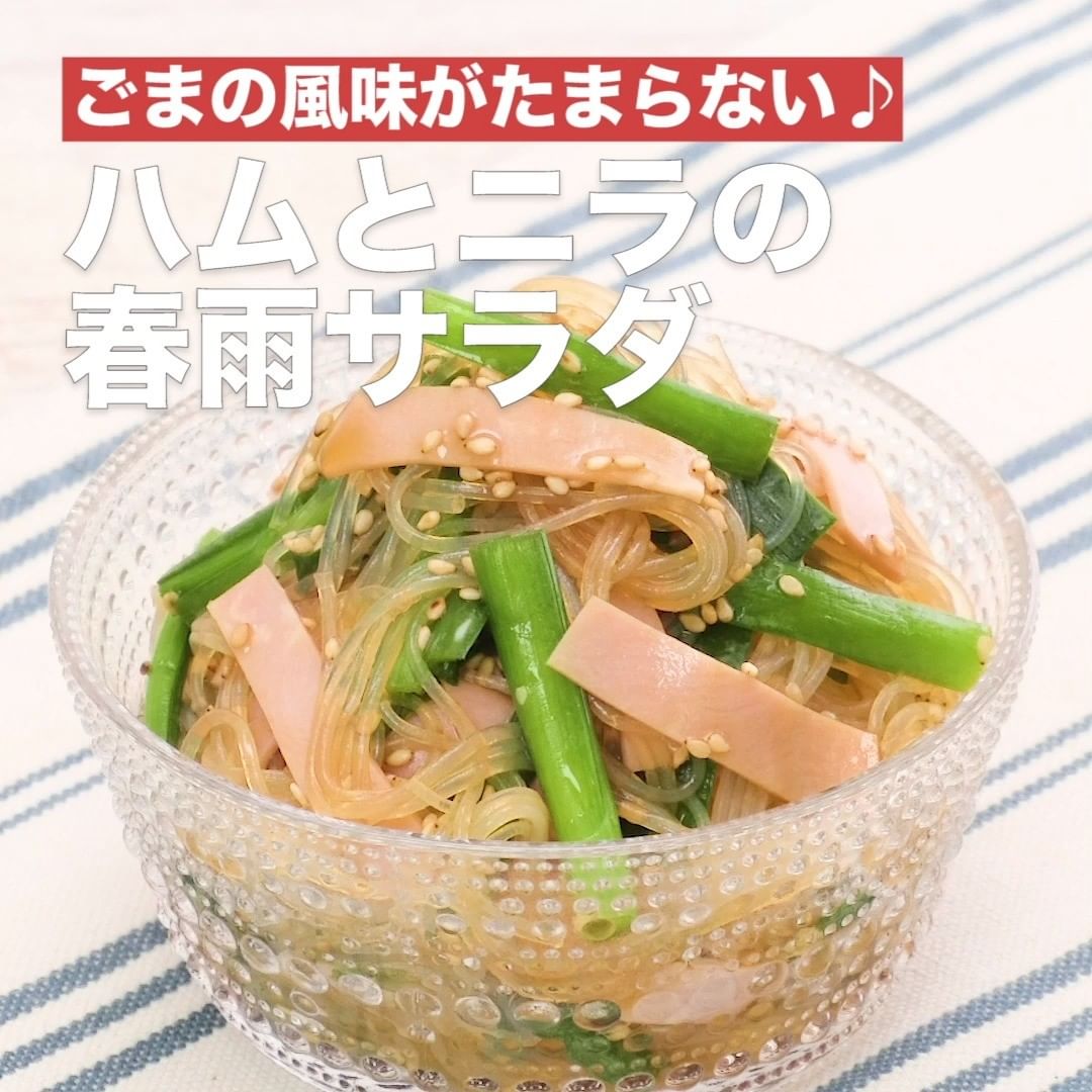 ⑥<ごまの風味がたまらない♪ハムとニラの春雨サラダ>