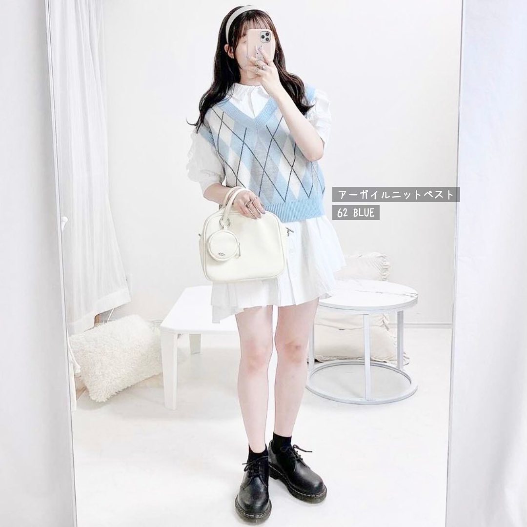 アーガイル柄がかわいい😘今の季節から活躍するニットベスト👍コンパクトなシルエットが、フェミニンに仕上げてくれて、コーデの幅出しに大活躍👏秋先取りコーデに、取り入れやすいニットベストです👌夏秋ミックスコーデのアクセントにも🙌ぜひ、チェックしてみてくださいね😊💕