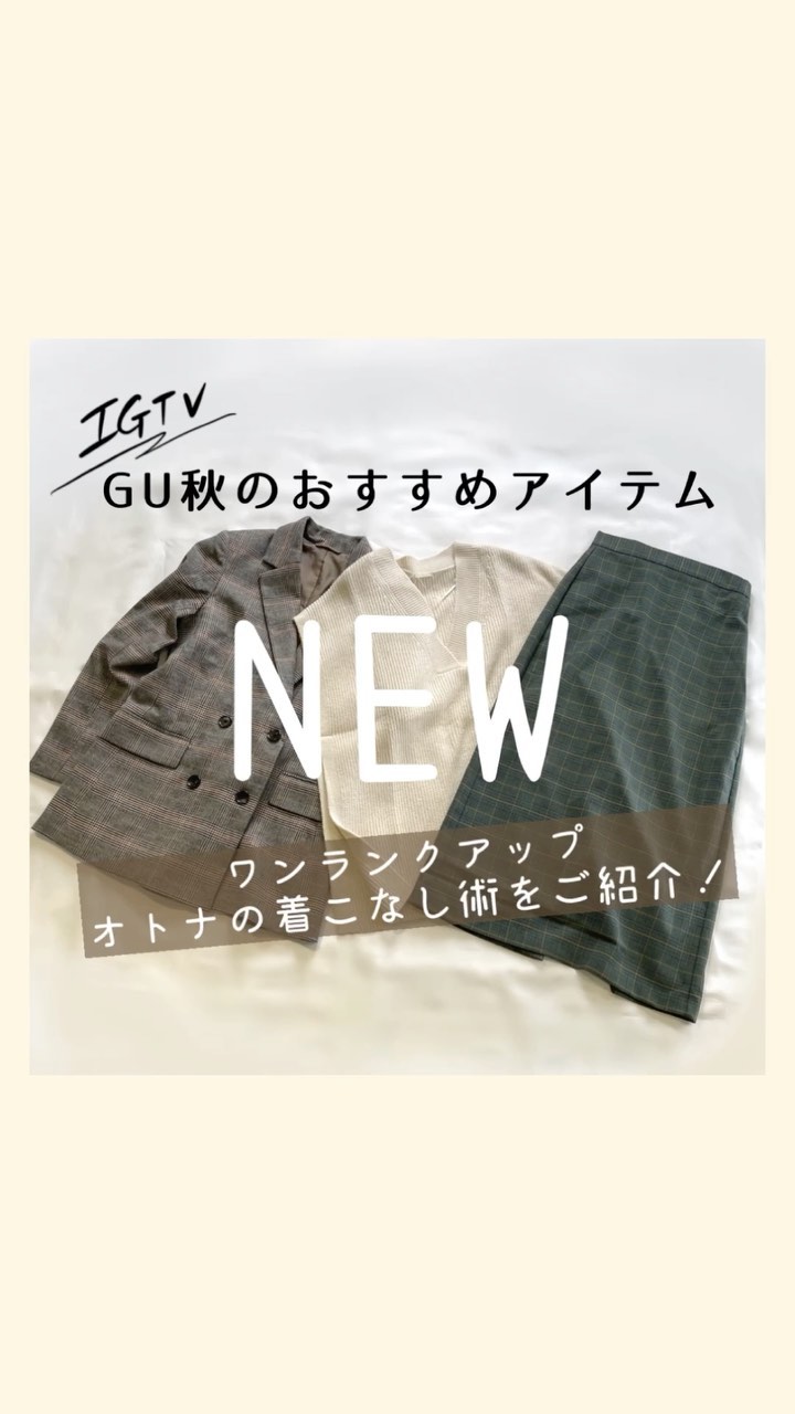 #上下GU #全身GU #ニットポンチョベスト #ダブルブレストテーラードジャケット #チェックナロースカート #ベスト #ジャケット #スカート
