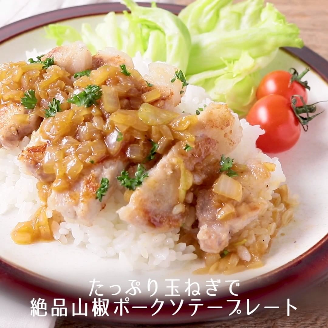 ①たっぷり玉ねぎで 絶品山椒ポークソテープレート