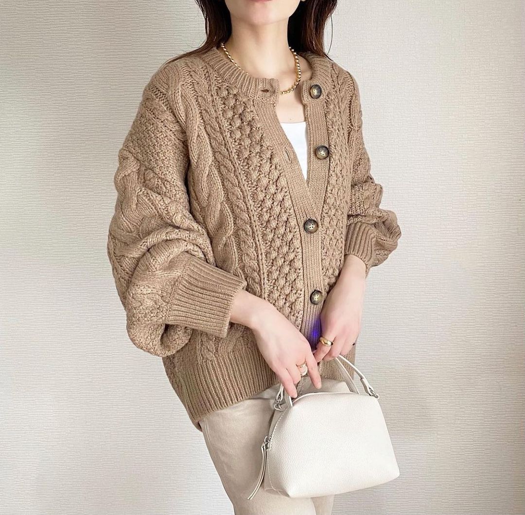 丸みのあるシルエットで包み込む🥰大人かわいいカーディガン✨ざっくりとしたケーブル編みが、高見え間違いなし👏