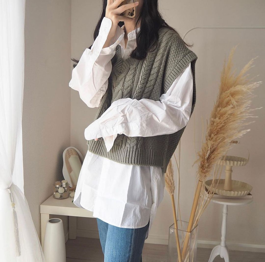ゆるっとしたシルエットと、レイヤードしやすいクロップド丈が、絶妙なニットベスト✨オーバーサイズのシャツとも、相性抜群ですね👍瞬間的にかわいさが伝わる、トレンド大本命のチャンキーニットは、秋の初めに活躍の予感🥰🍁