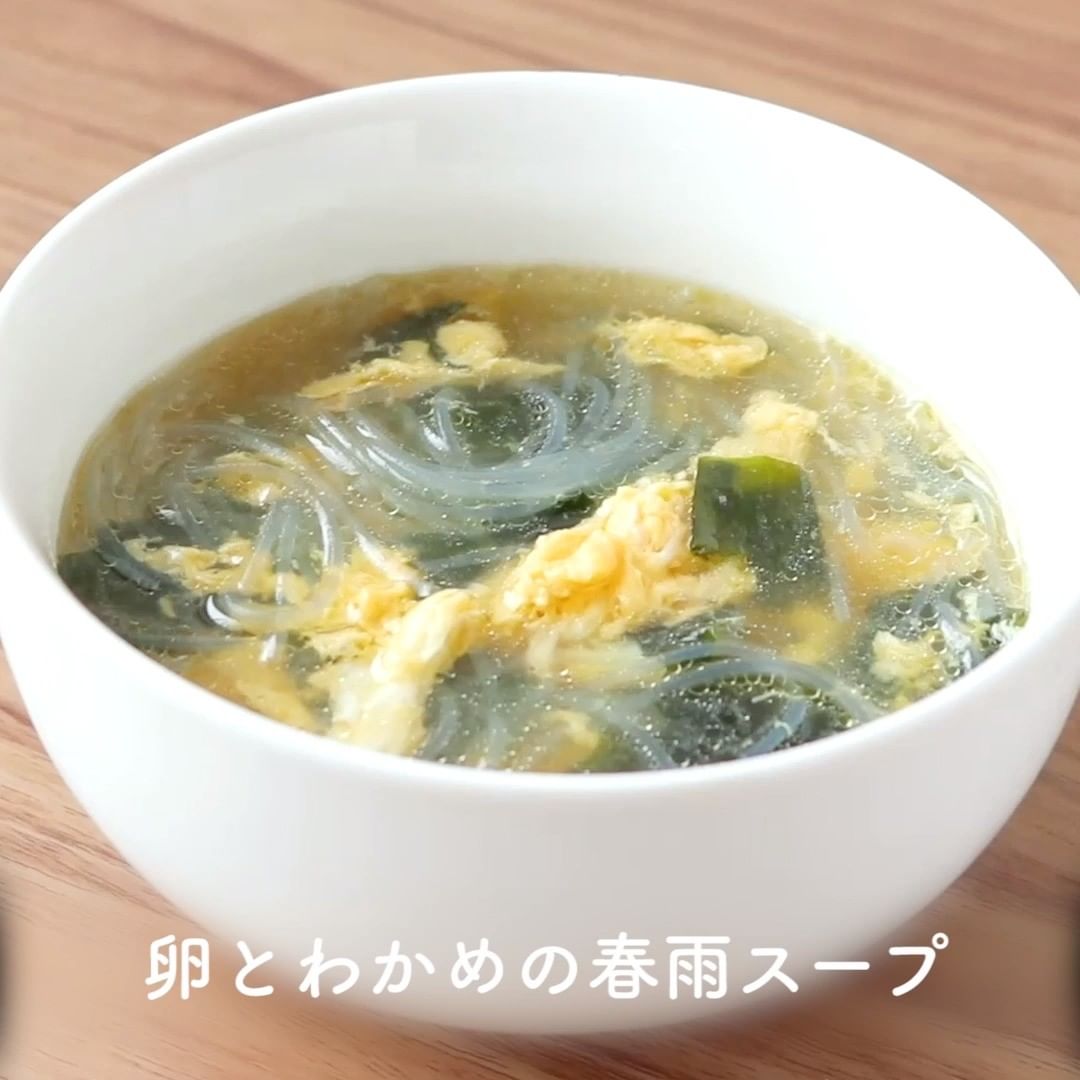 ④卵とわかめの春雨スープ