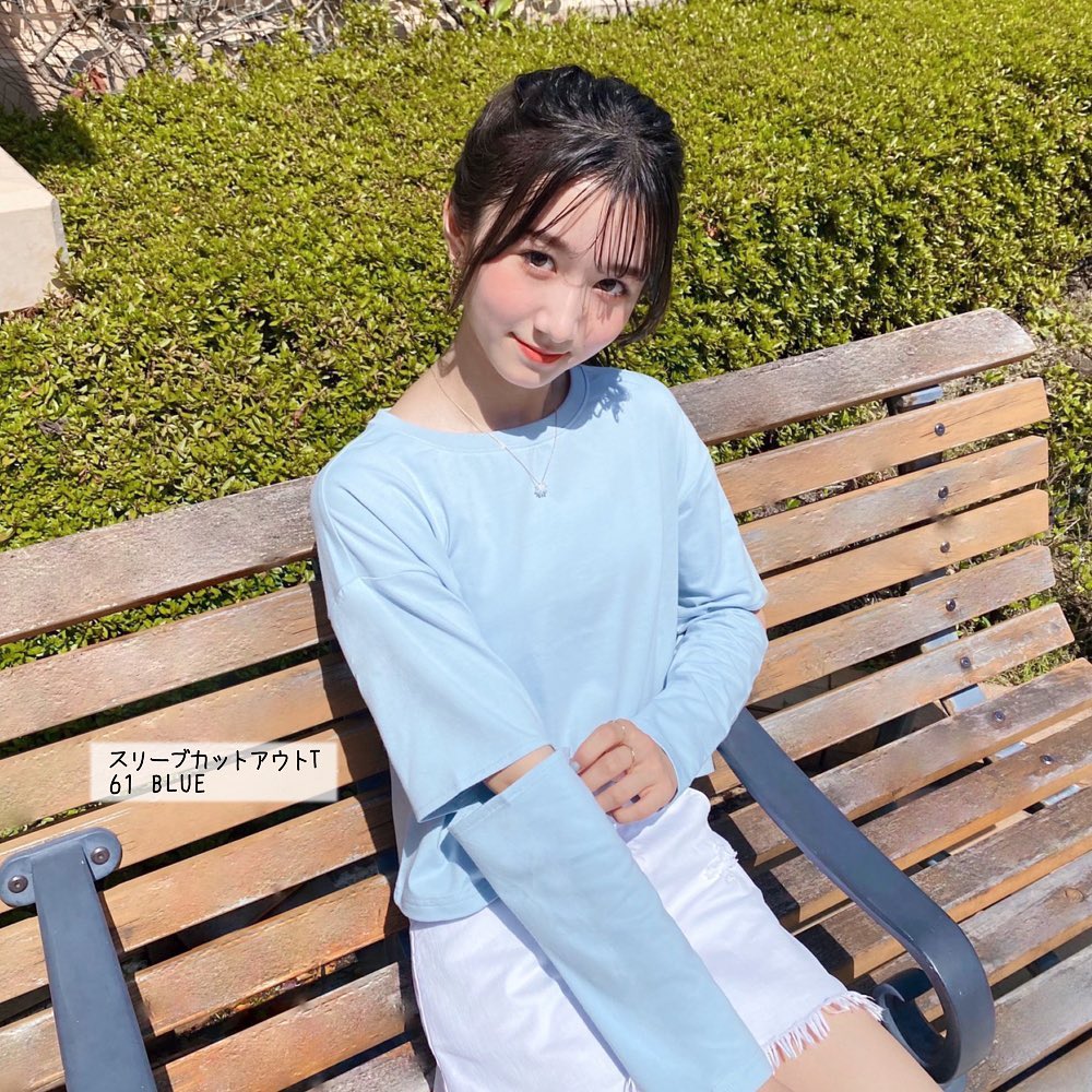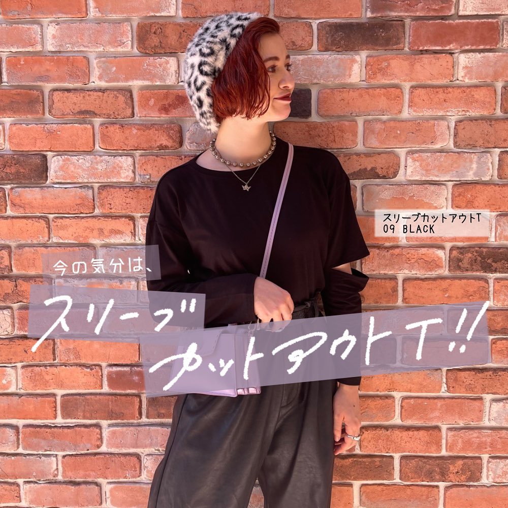 カットデザインがお気に入り👍スリーブカットアウトT✨ひじ部分がカットされ、ヘルシーな肌見せができるデザインT😘カット部分をいかして、レイヤードしてみたり👌