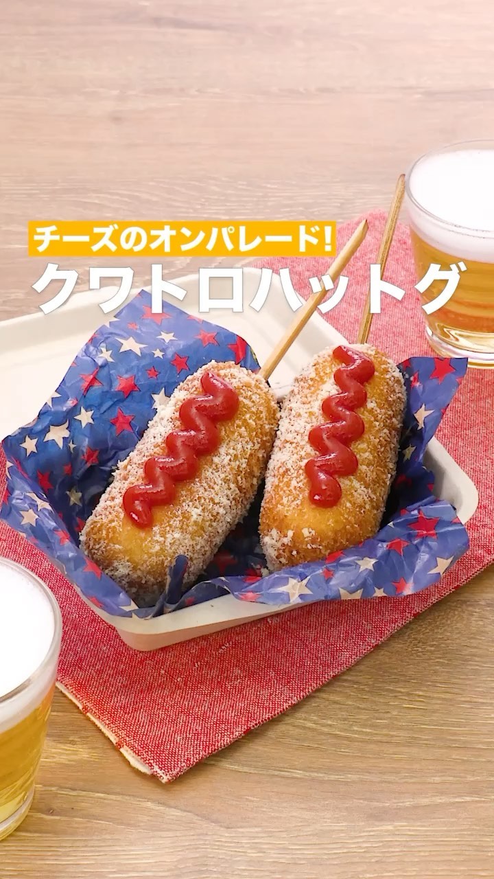 人気の韓国のおやつ「ハットグ」を4種のチーズを使ってアレンジしました!一口かぶりつけば、チーズがとろ〜りあふれ出します。チーズ好きにはたまらない、特別な一品です。