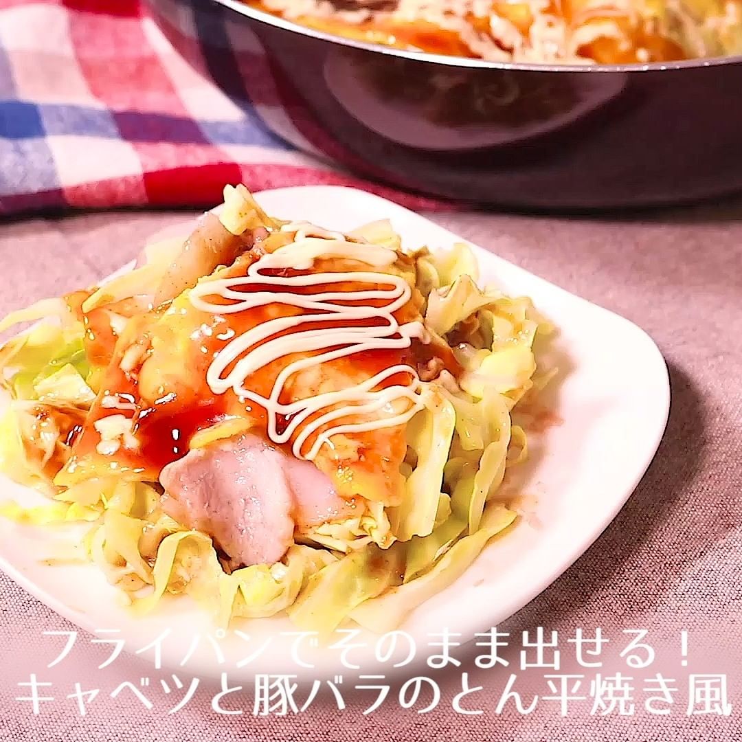 ⑥フライパンでそのまま出せる!キャベツと豚バラのとん平焼き風