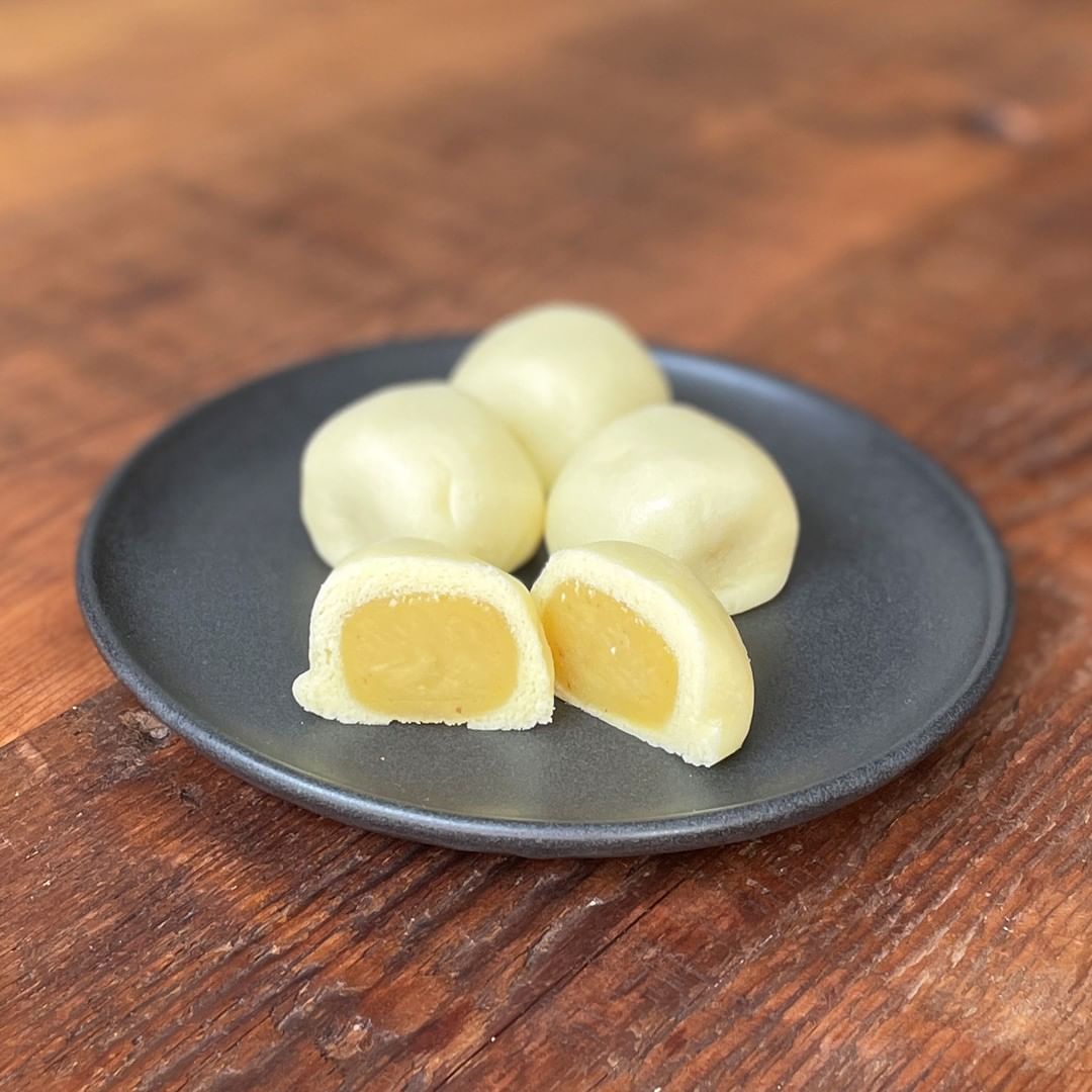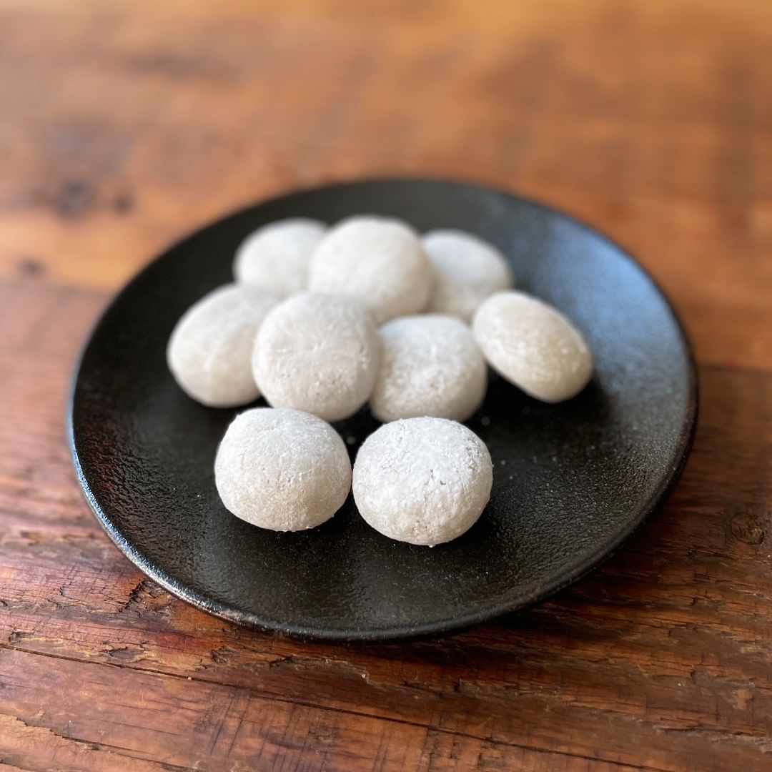 ついつい手が伸びる大きさの「栗のひとくち大福」は、なめらかな舌触りの栗あんを、もっちりとしたお餅で包みました。