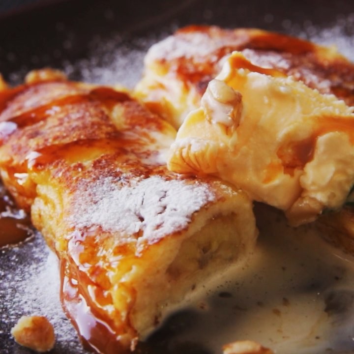 フレンチロール ■材料 ・食パン[サンドイッチ用] 2枚 ・卵 1個 ・牛乳 100cc <バナナカラメリゼ> ・バナナ 1本 ・グラニュー糖 30g <キャラメルソース> ・グラニュー糖 25g ・水 小1 ・生クリーム 50g ・バター 10g ・粉糖 少々 ・クルミ ・バニラアイス ・セルフィーユ ■手順 1. 食パンを綿棒で伸ばし広げ、牛乳に卵を溶いた卵液に浸す。 2. フライパンにグラニュー糖をひき、そのうえに縦半分に切ったバナナをのせて、さらに上からグラニュー糖をかける。中火にかけグラニュー糖が溶けてキャラメル色になったらバナナを裏返し両面に絡める。 3. バナナの粗熱が取れたら食パンで巻く。 4. 鍋にグラニュー糖25gと水を入れ中火にかける。グラニュー糖が溶け、ふちが茶色く色付き少し煙が上がったらすぐに冷たい生クリームを入れ均一になるまで混ぜる。 5. 中火で熱したフライパンにバターを溶かし、バナナを巻いた食パンをいい焼き色がつくまで焼く。 6. 温かいうちに粉糖、砕いたクルミ、バニラアイス、キャラメルソースをかけ、セルフィーユを添えたら完成! フルバージョンはfacebookで公開中!Tastemade japanで検索してくださいね。 #フレンチ #ロール #軽食 #breakfast #生クリーム #バニラアイス #icecream #sweets #スイーツ #おやつ #お菓子作り #デザート #dessert #おうちカフェ #料理 #cooking #レシピ #delish #instacook #yummyfood #homemadefood #instafood #instadessert #nomnomnom