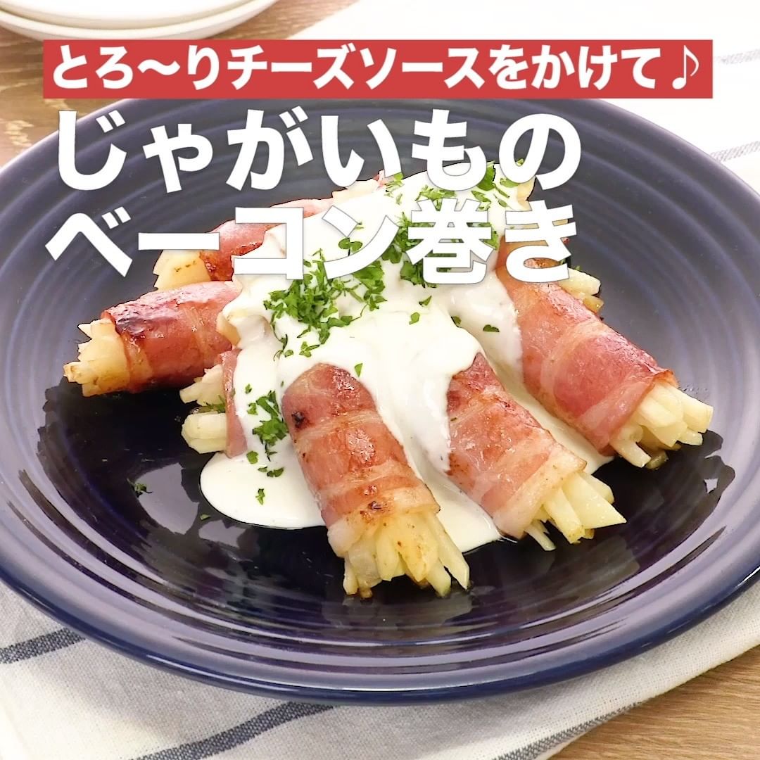 ①<とろ〜りチーズソースをかけて♪じゃがいものベーコン巻き>