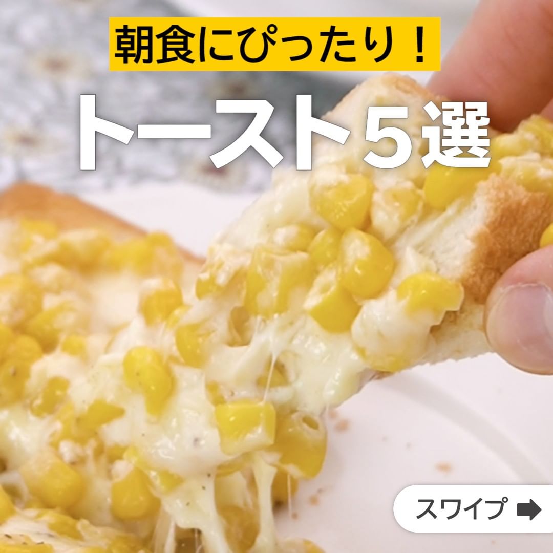 ①<朝食にぴったり!コーンマヨのチーズトースト>