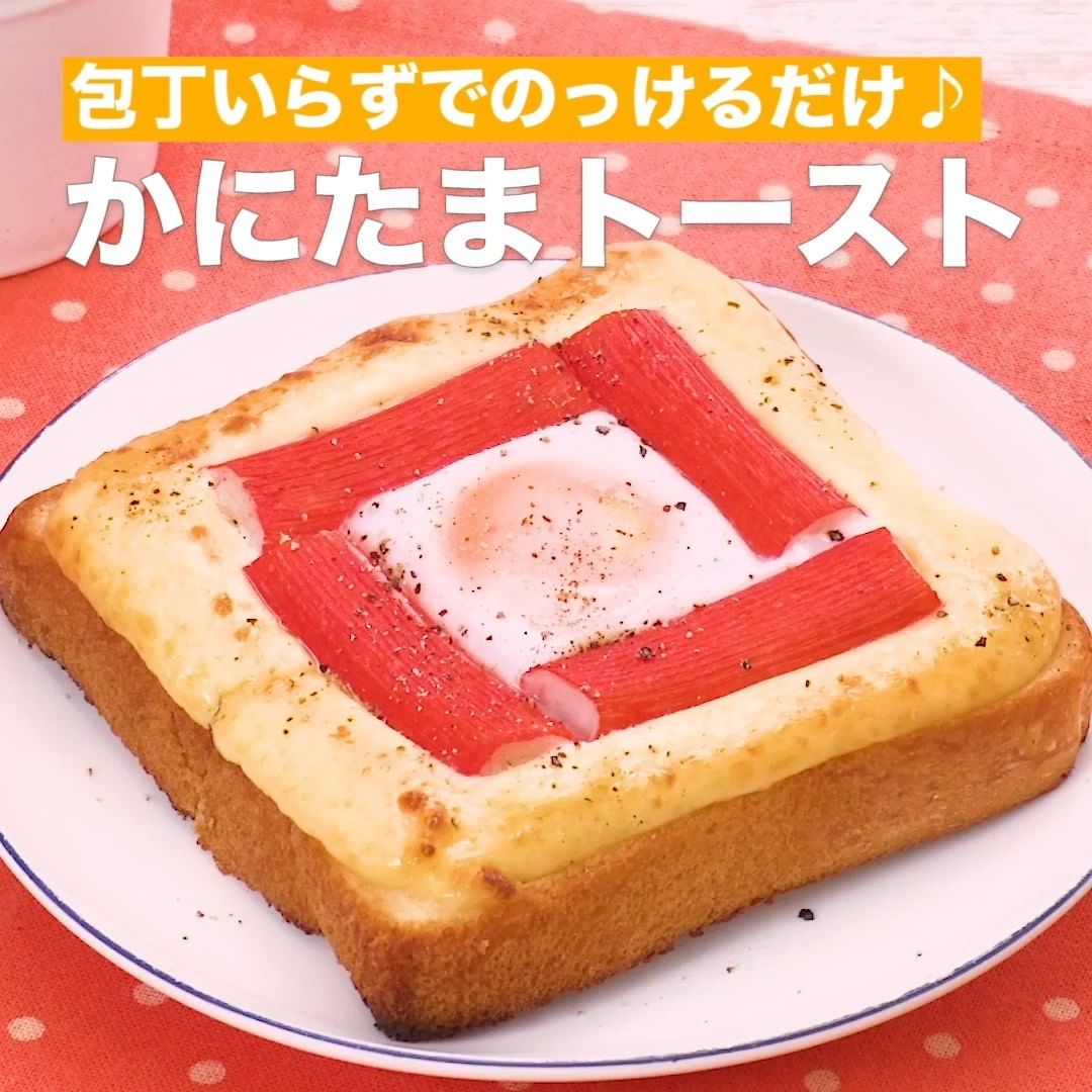 ⑤<包丁いらずでのっけるだけ♪かにたまトースト>
