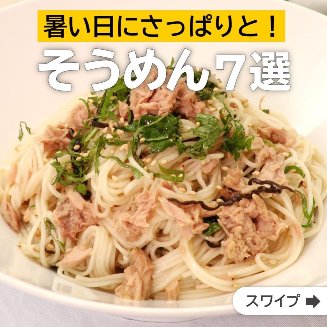 ①<あえるだけ!ツナと塩昆布のさっぱりそうめん>