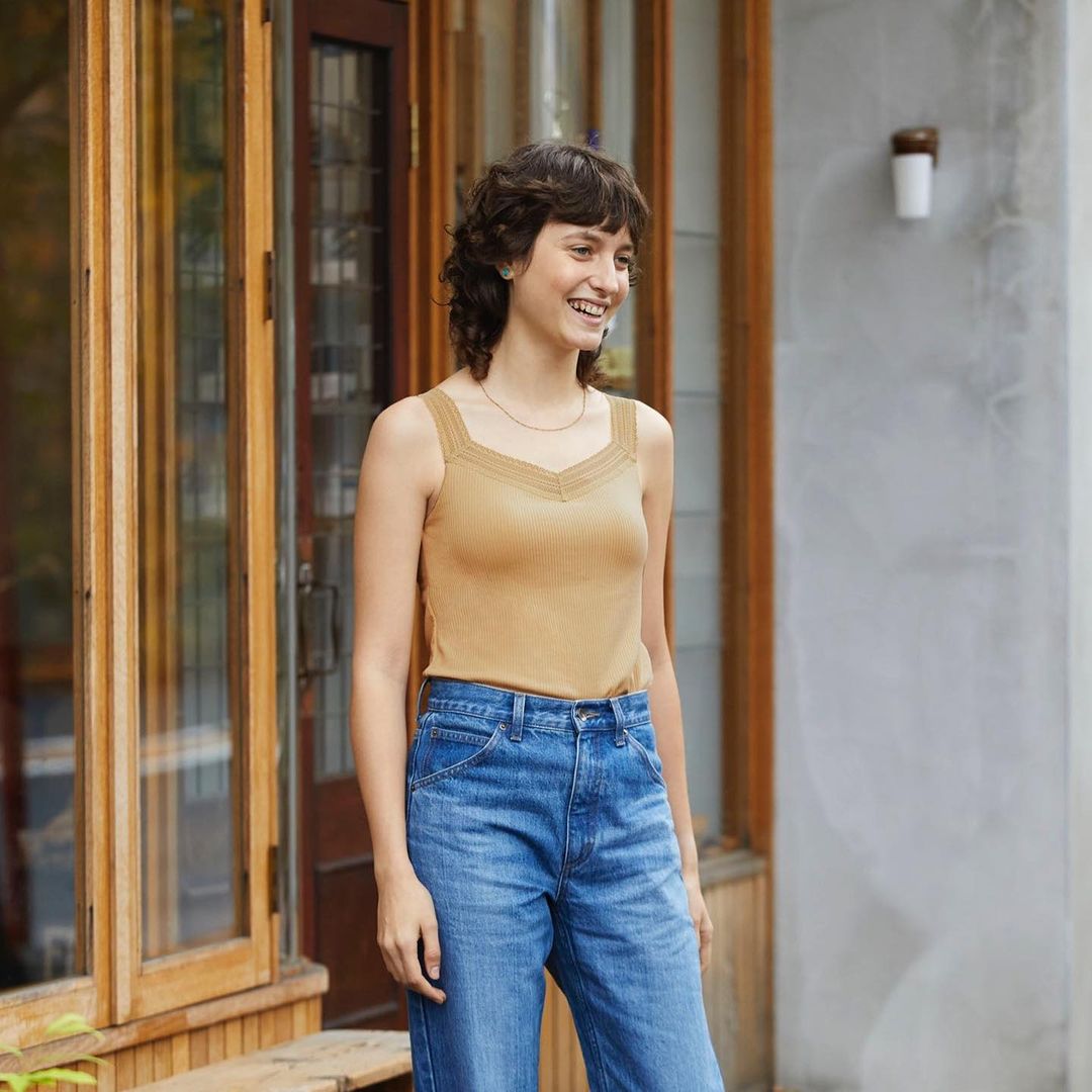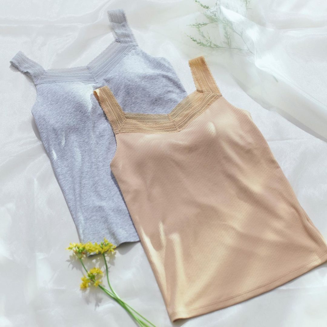 434814 Women AIRism cotton ribbed lace bra sleeveless top