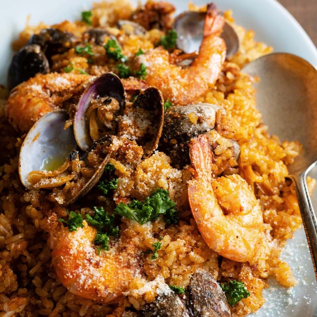 4.炊き上がったら、バターを和え、器に盛り付けたら、パセリと粉チーズをたっぷりとかけたら、できあがりです。