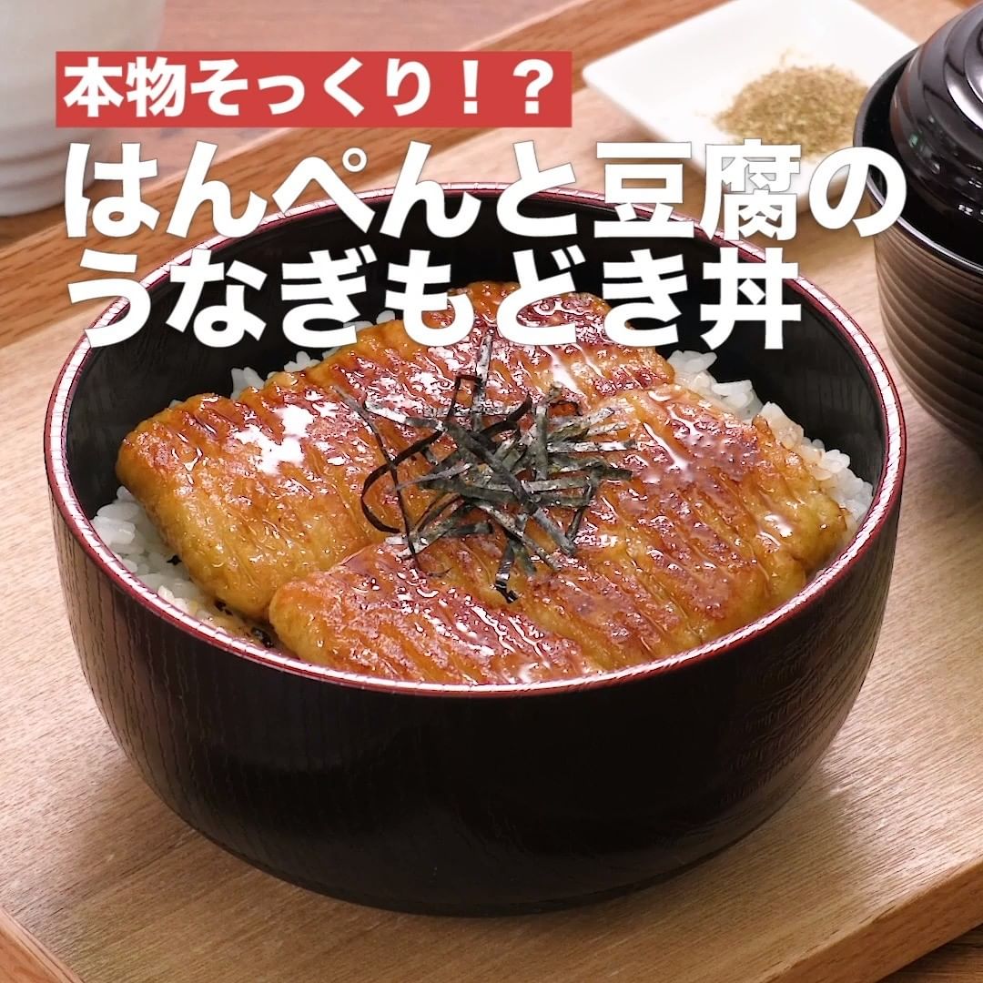 お手頃食材のはんぺんと木綿豆腐を使って作る、うなぎもどき丼をご紹介!表面はこんがりと焼き付け、中はふっくら仕上げます。こってりとした蒲焼のたれでごはんがすすみます。