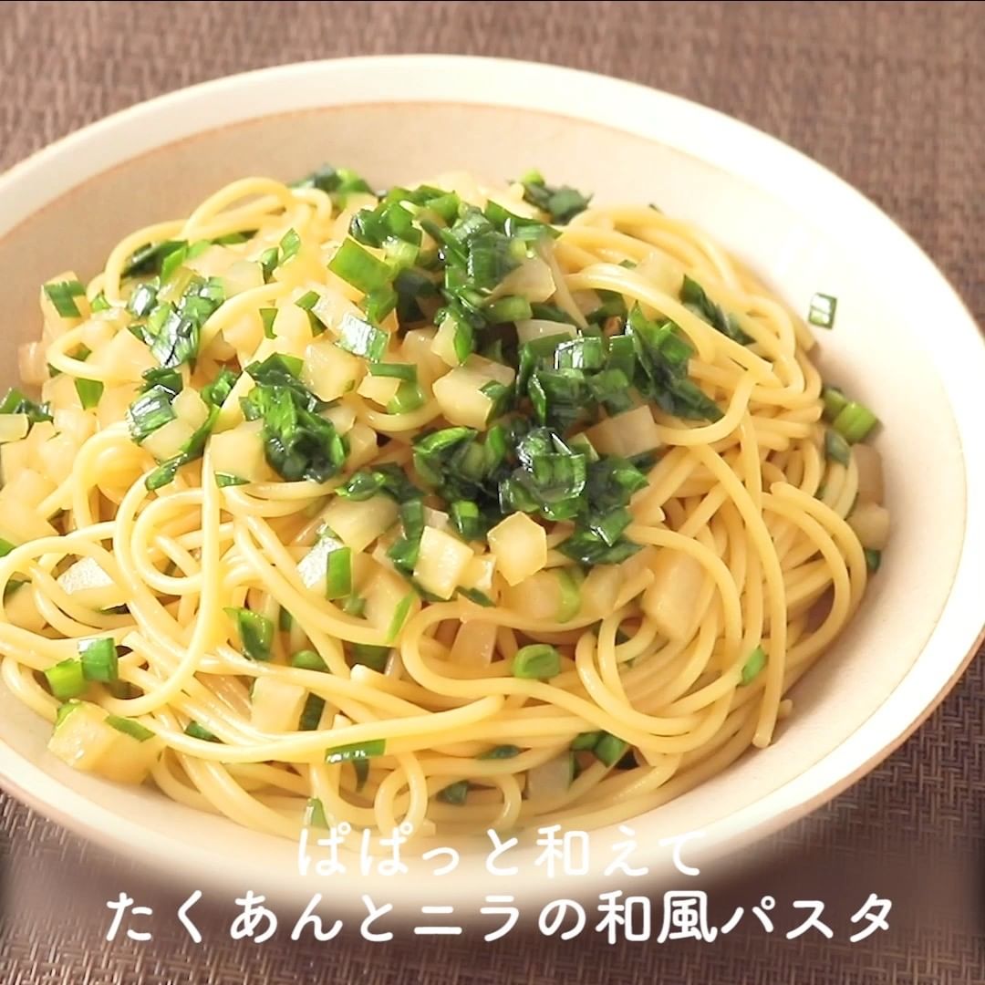 ④ぱぱっと和えて たくあんとニラの和風パスタ
