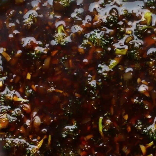 5. 小皿にコーンスターチと水を入れて混ぜ合わせ、 (4)に回しかける。ブロッコリーが柔らかくなってソースにとろみがつくまで、2-3分煮る。