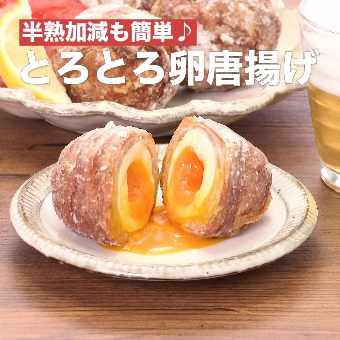 ⑤<半熟加減も簡単♪とろとろ卵唐揚げ>