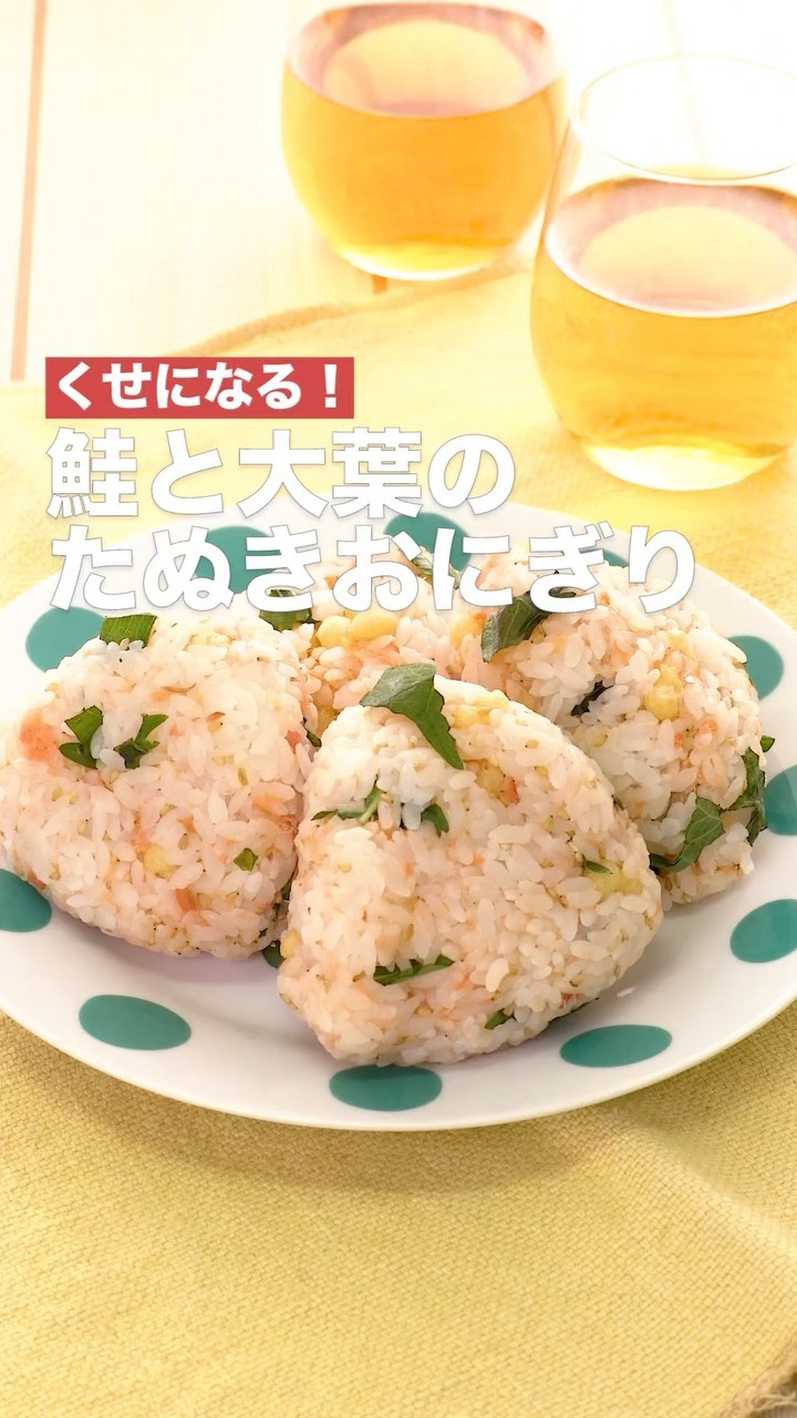 動画の詳細が気になる人はアプリで「鮭と大葉のたぬきおにぎり」で検索してみてくださいね♪