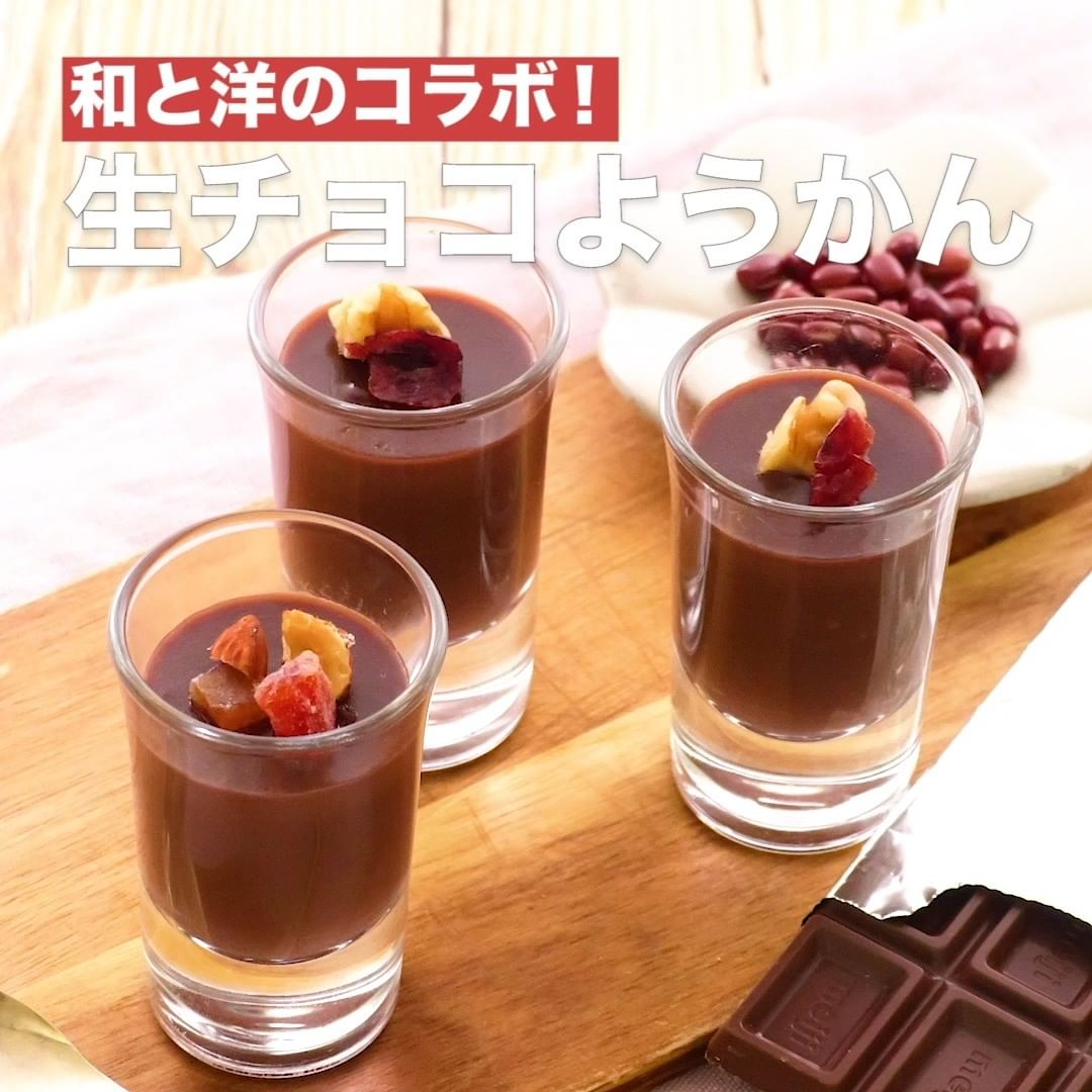 生チョコ寒天を中に包んだ和洋スイーツはいかがでしょうか?小さめのサイズなのでパクっとつまめる手軽さも魅力です♡求肥のモチモチの食感とチョコレートのコク、あんこの上品な甘さが口の中で溶け出します♪