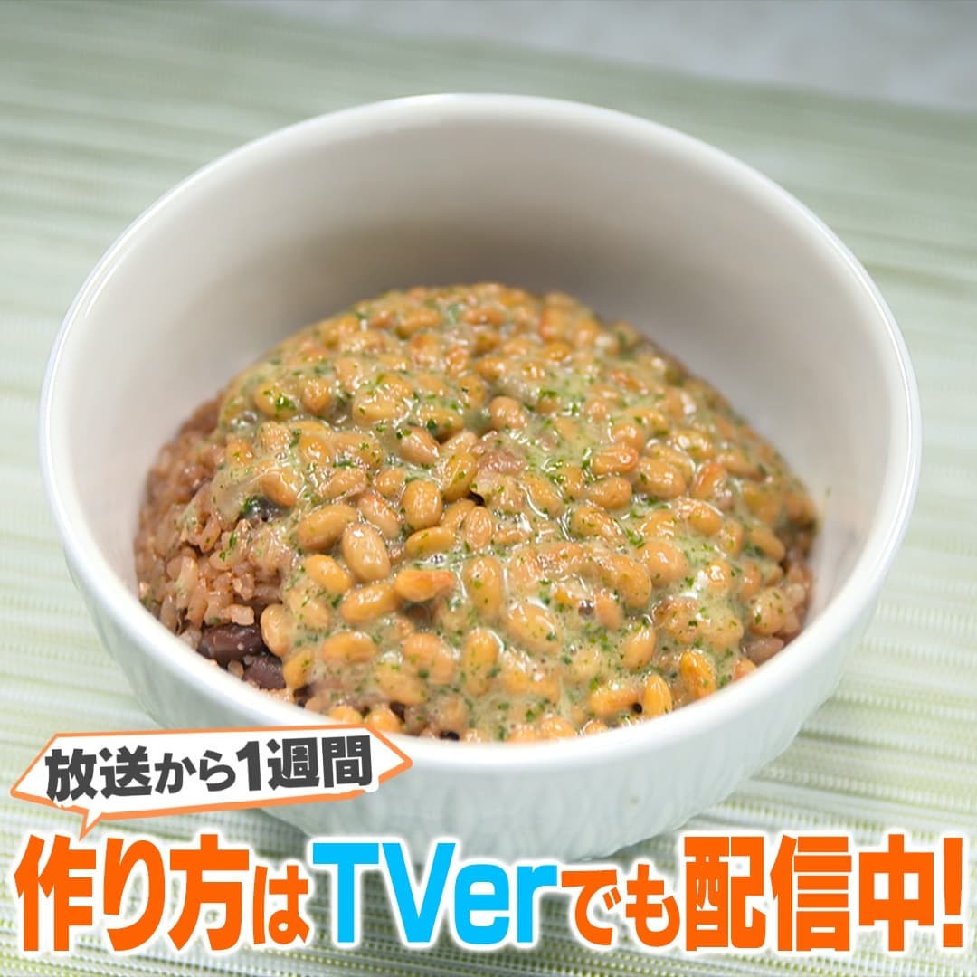 ③酵素玄米を納豆の上に盛り、全体を軽く押し付ける
