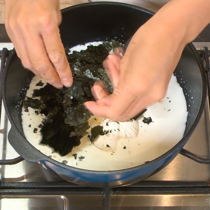*今回は海苔でとろみがつくので、少し牛乳多めにするとよりおいしくなります!
