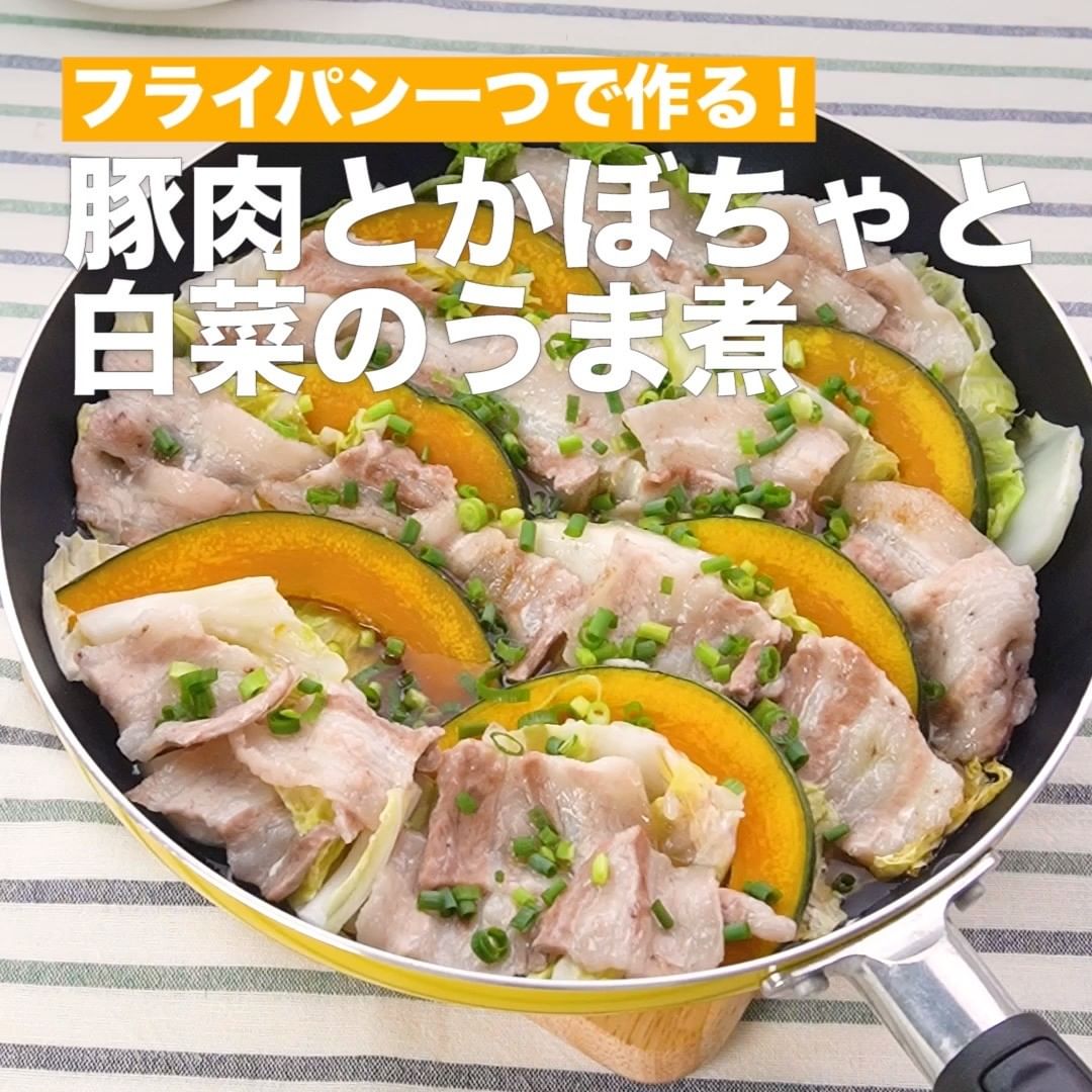 ③<フライパン一つで作る!豚肉とかぼちゃと白菜のうま煮>