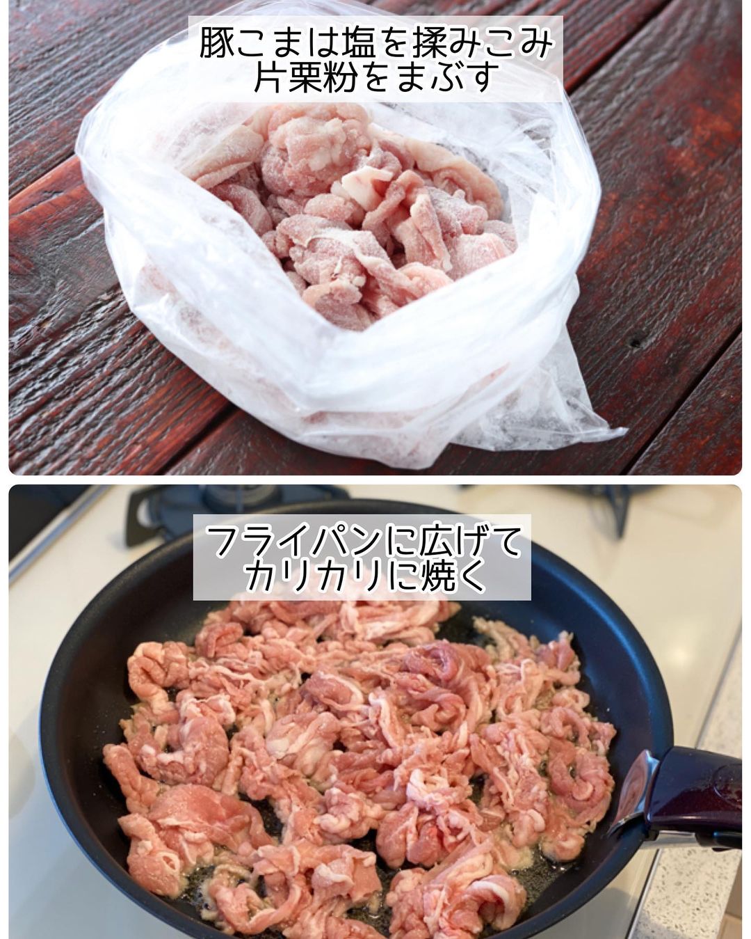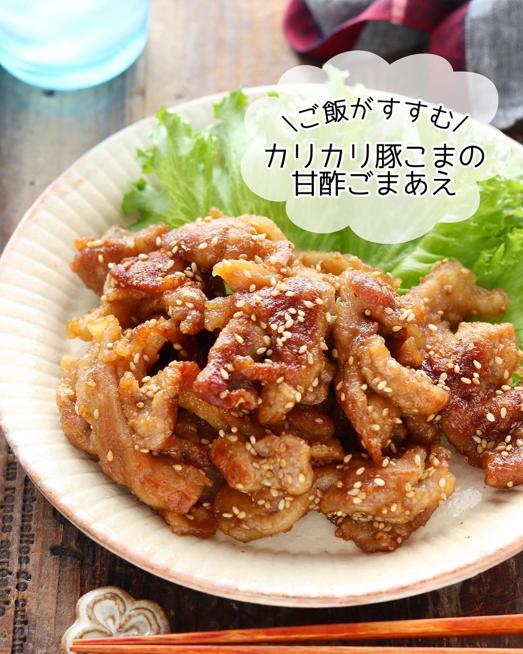 𓎩 #カリカリ豚こまの甘酢ごまあえ