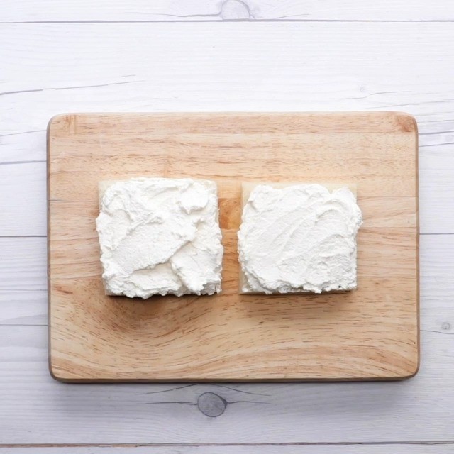 食パンにクリームチーズを塗り、ブルーベリージャムをのせ、もう1枚の食パンで挟んで完成!