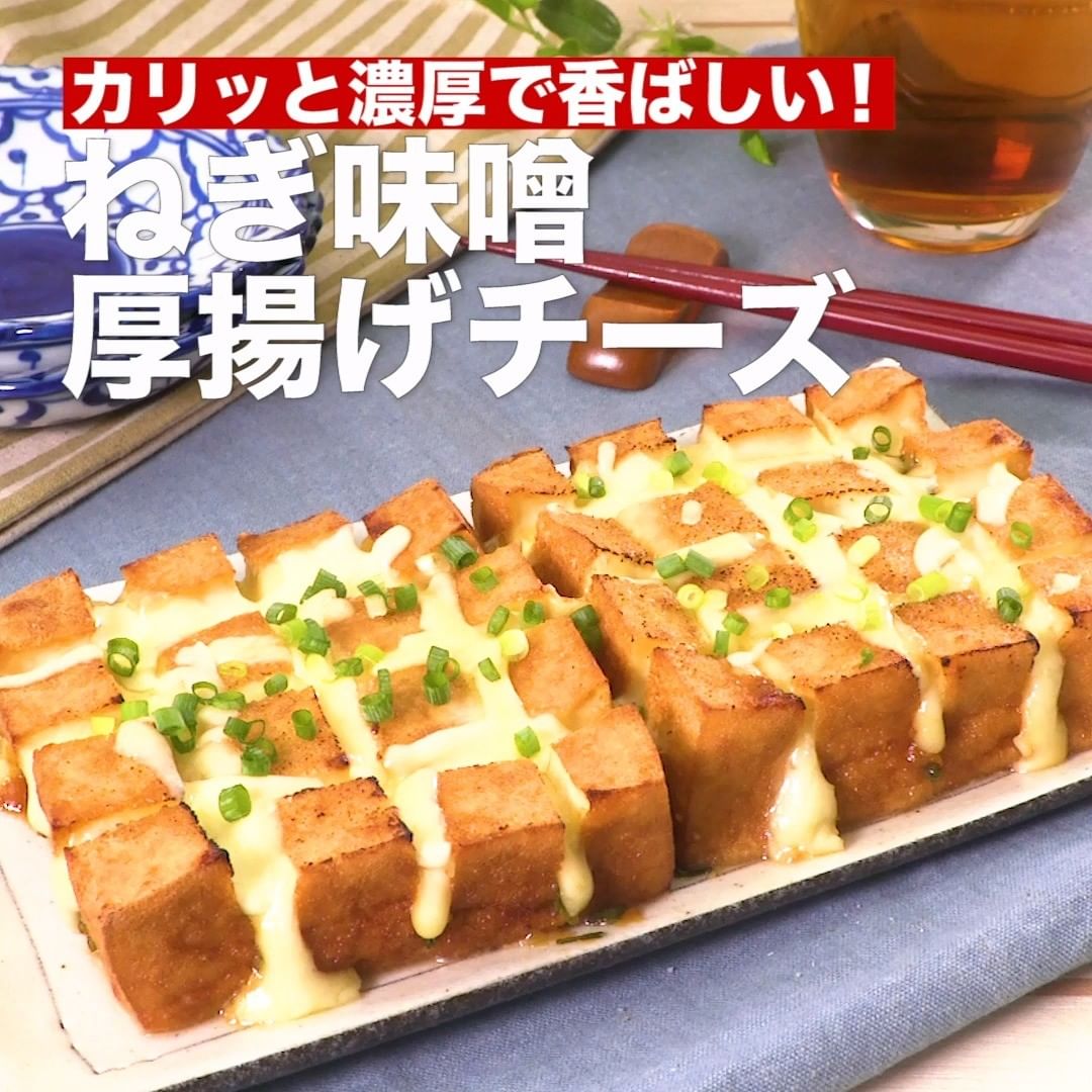 ①<カリッと濃厚で香ばしい!ねぎ味噌厚揚げチーズ>
