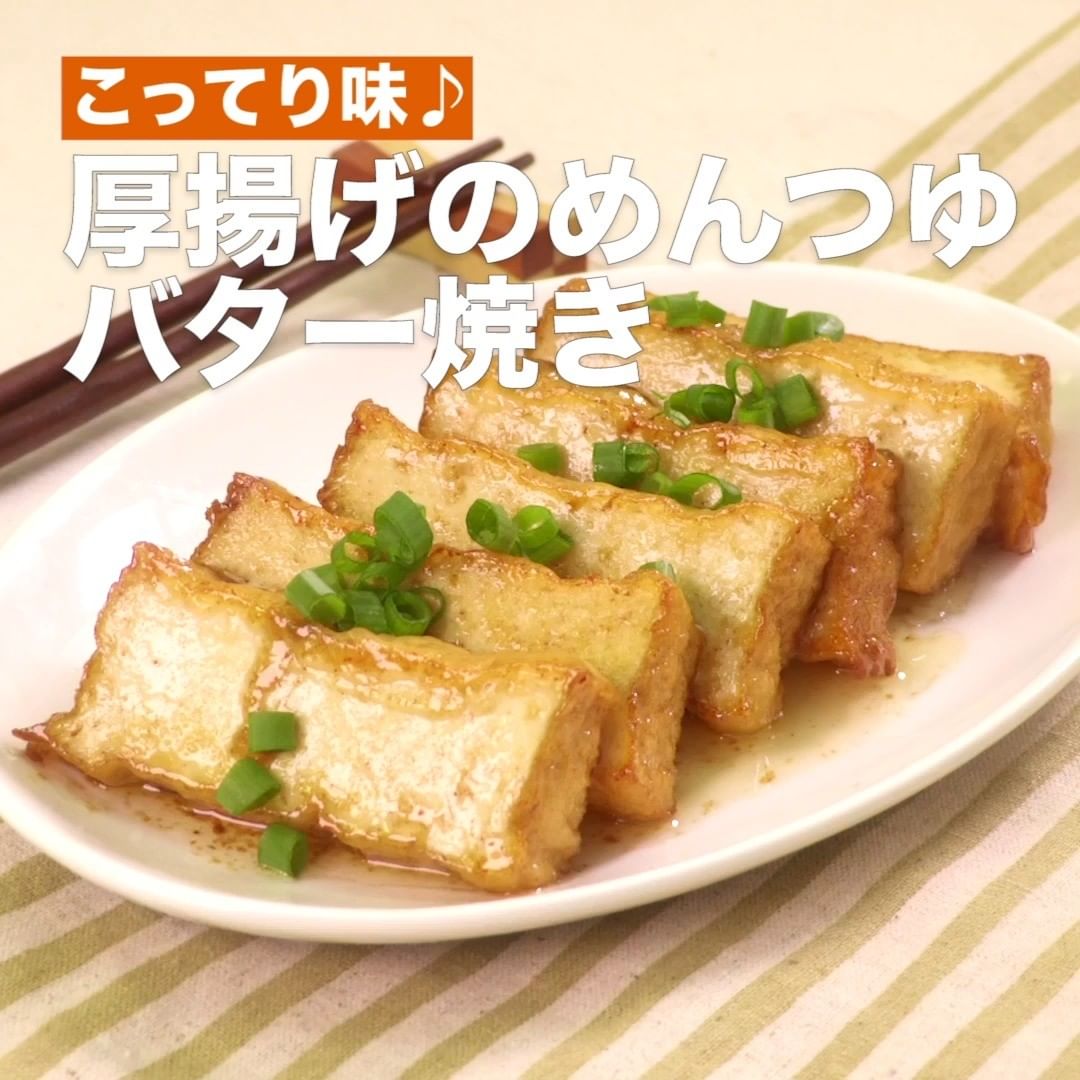 ②<こってり味♪厚揚げのめんつゆバター焼き>