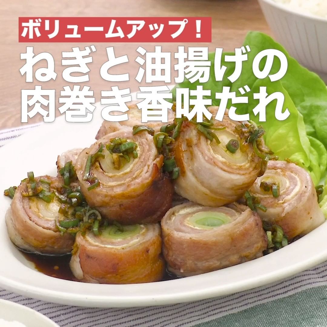 ⑤<ボリュームアップ!ねぎと油揚げの肉巻き香味だれ>