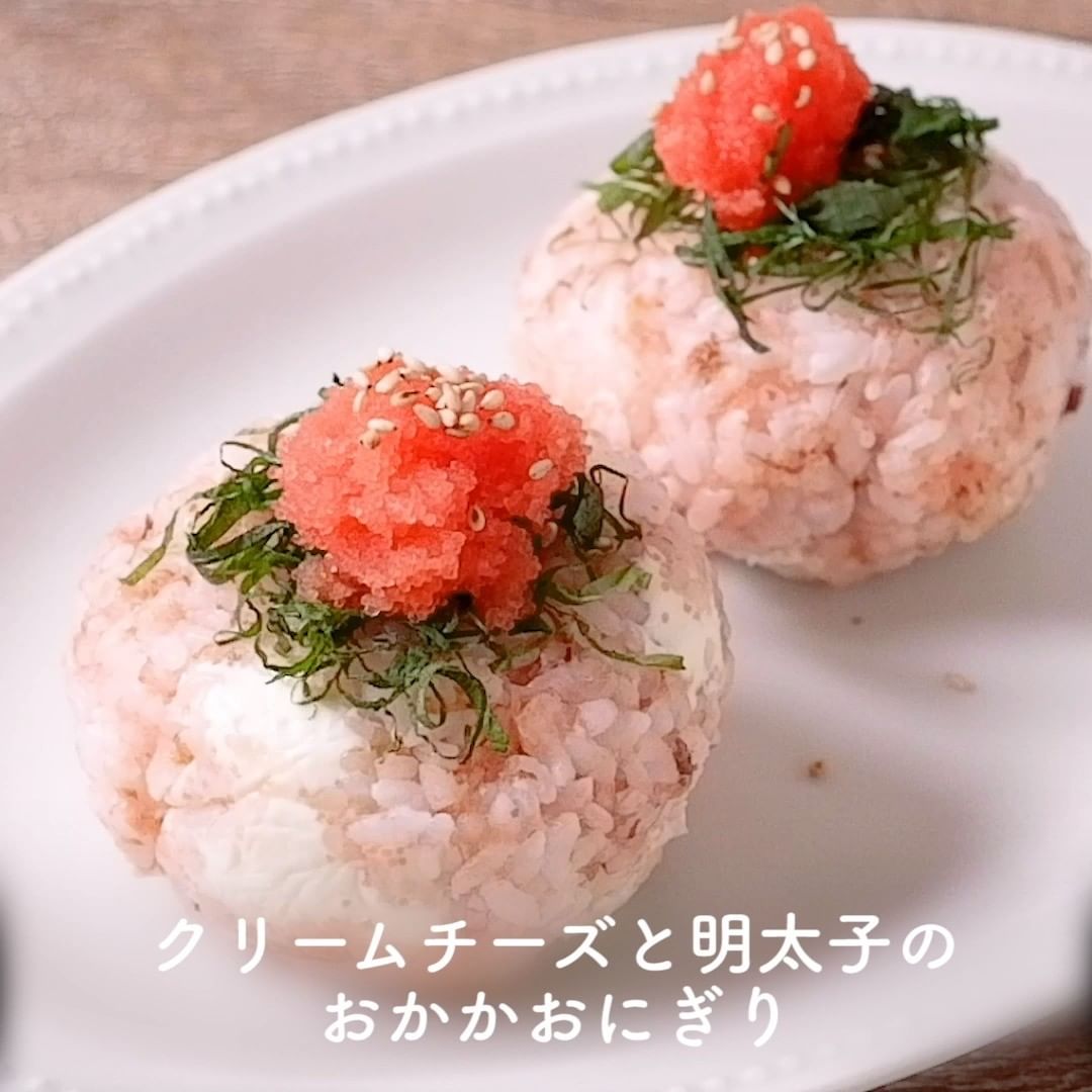 ③クリームチーズと明太子のおかかおにぎり