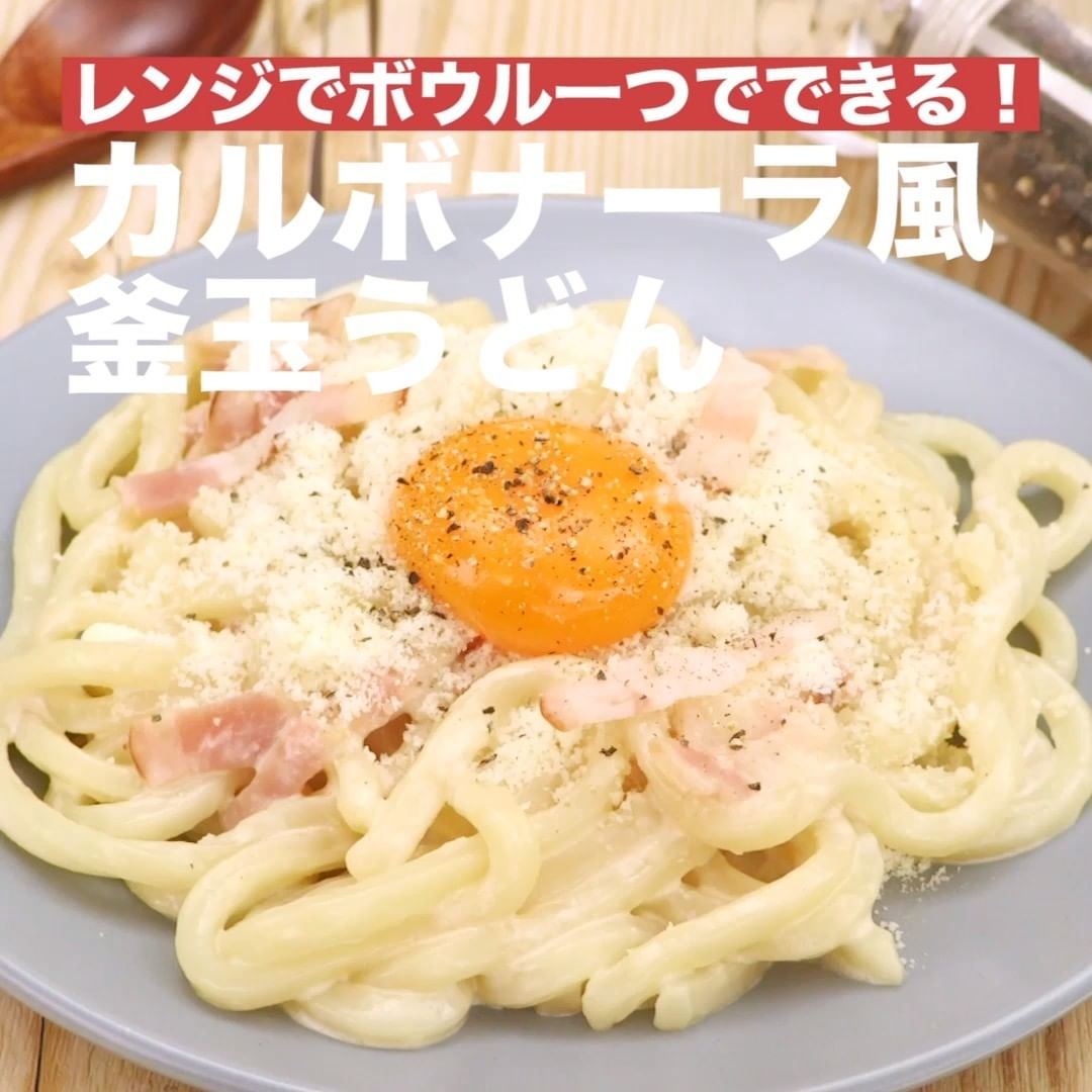 ④<レンジでボウル一つでできる!カルボナーラ風釜玉うどん>