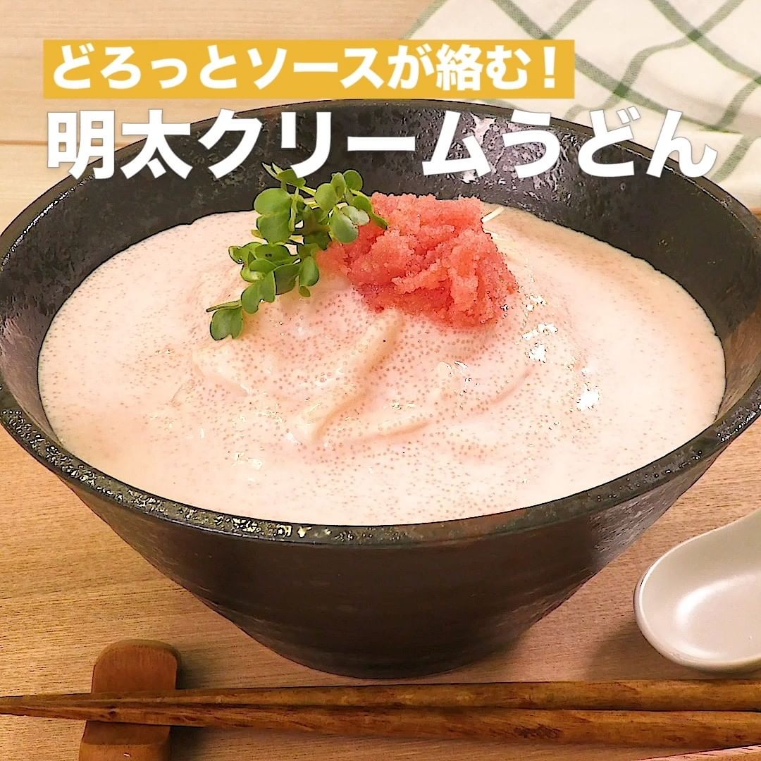 ①<どろっとソースが絡む!明太クリームうどん>