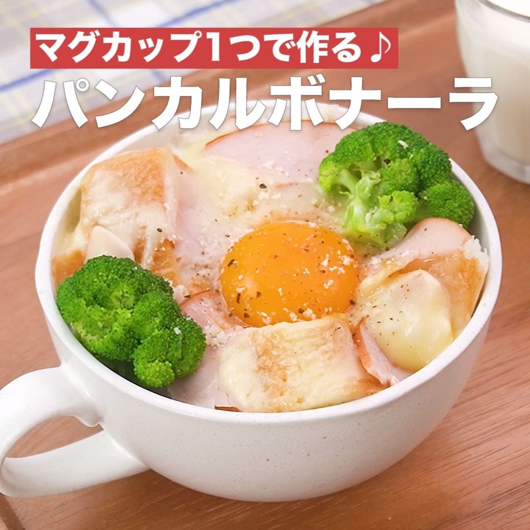 ①<マグカップ1つで作る♪パンカルボナーラ>