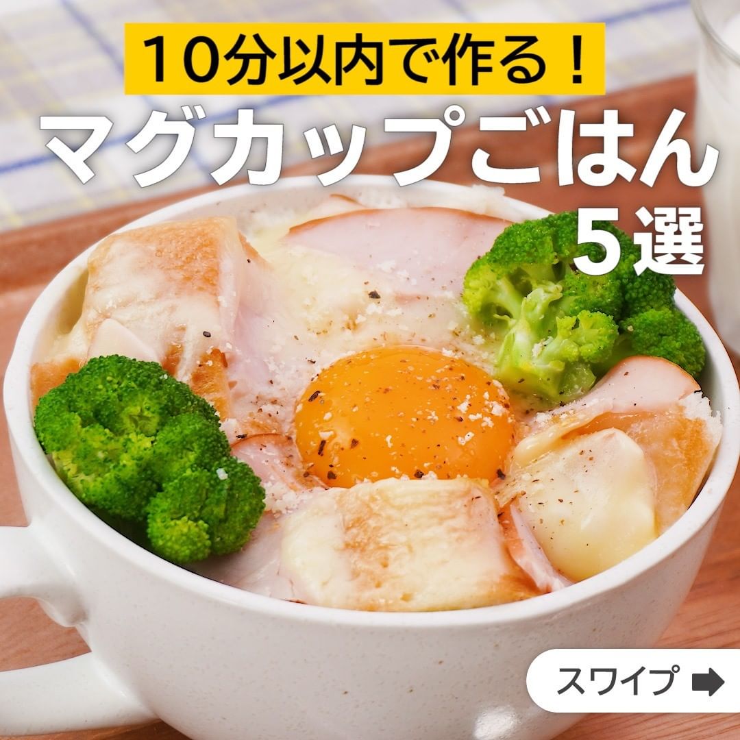 具材をマグカップに入れて電子レンジで仕上げます!包丁を使わないのも嬉しいポイント♪朝ごはんや、忙しい日のランチにパパッと作ってお召し上がりください。