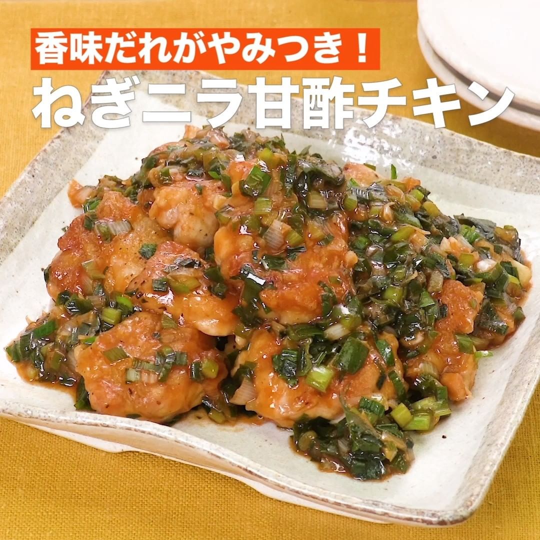 ④<香味だれがやみつき!ねぎニラ甘酢チキン>