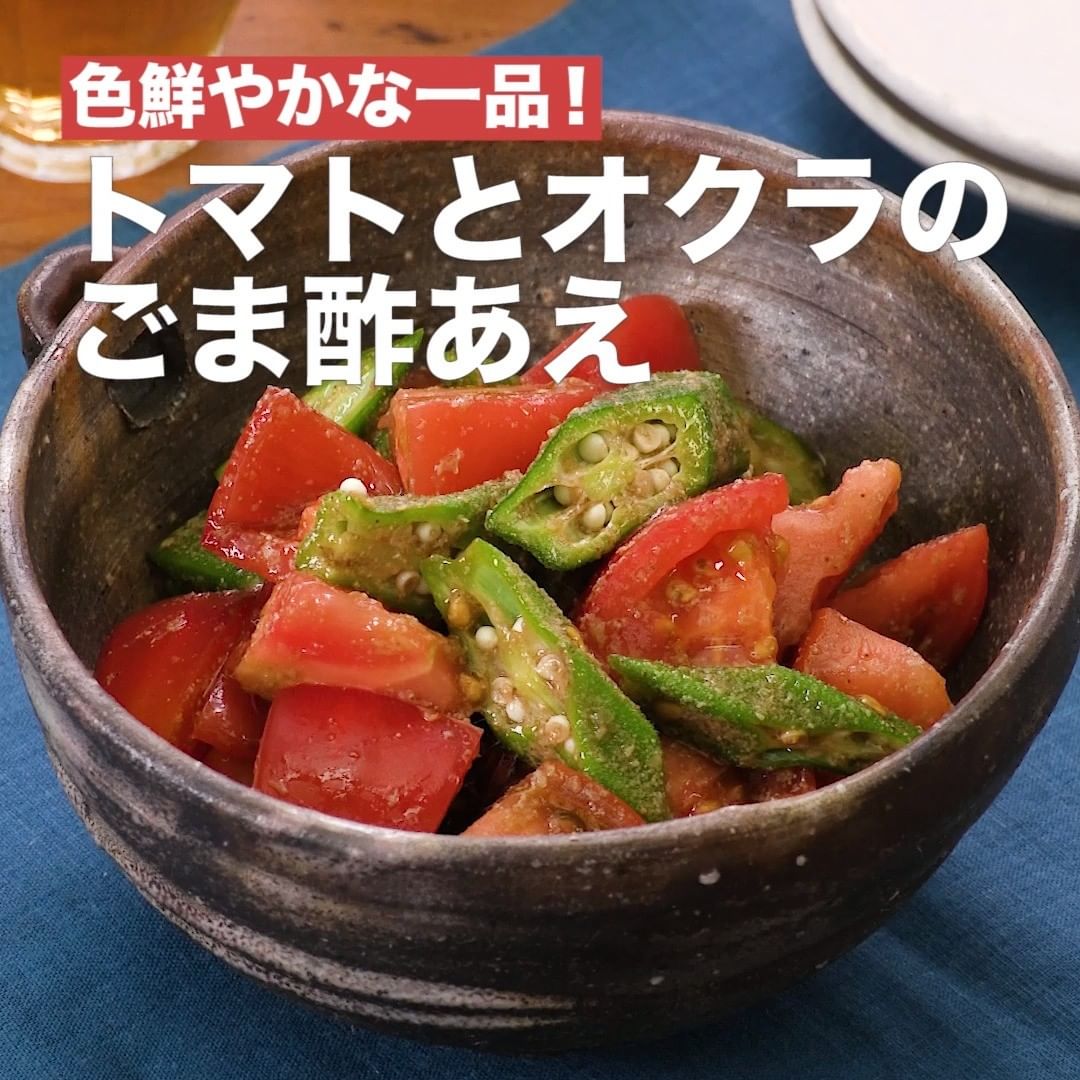 ①<色鮮やかな一品!トマトとオクラのごま酢あえ>