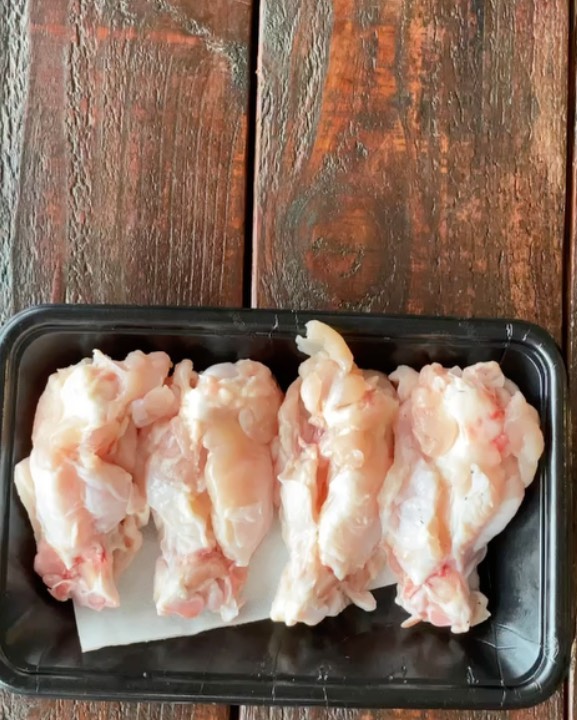 ➊鶏手羽元は骨に沿って𝟷本切り込みを入れる。大根とにんじんは𝟷𝚌𝚖幅の半月切りにする。玉ねぎはくし形切りに、ブロッコリーは小房に分ける。