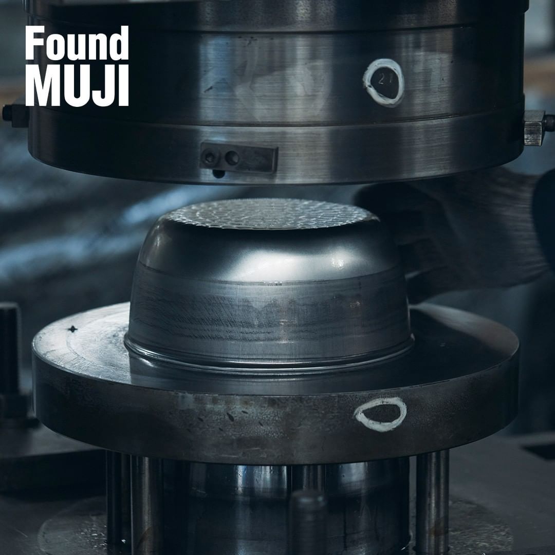 @MUJI無印良品 MUJI無印良品: 【Found MUJI】# 355 アルミやっとこ鍋 – やっとこ鍋は底打ち・プレス・面取り・打ち出し・研磨の工程から作られます。 大きなプレス機に金型をセット… 2021-09-15 【Found MUJI】# 355 アルミやっとこ鍋 – やっとこ鍋は底打ち・プレス・面取り・打ち出し・研磨の工程から作られます。 大きなプレス機に金型をセットし、圧力をかけて成型します。プレス時は迫力のある音が工場に響き渡ります。鍋の側面は槌目をつけるための打ち出し加工が施されます。この槌目は装飾に思われがちですが、歪みを防ぎ、熱伝導率を高める機能があります。 – #無印良品 #MUJI #アルミ #やっとこ鍋 #道具 #FoundMUJIMetal Ciao, Nihon.