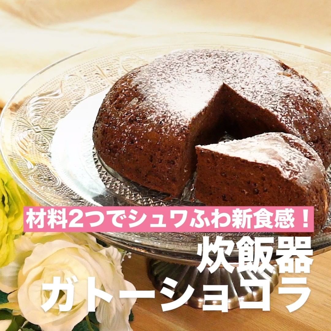 今回は材料2つでつくれちゃう簡単レシピです。炊飯器で作るガトーショコラは普通のと少し食感が違う…?シュワっとやわらかく広がるスフレのようなガトーショコラ、ぜひ試してみてください♪※ケーキモードがついている炊飯器をご利用の場合は、ケーキモードでの炊飯をお願いします。