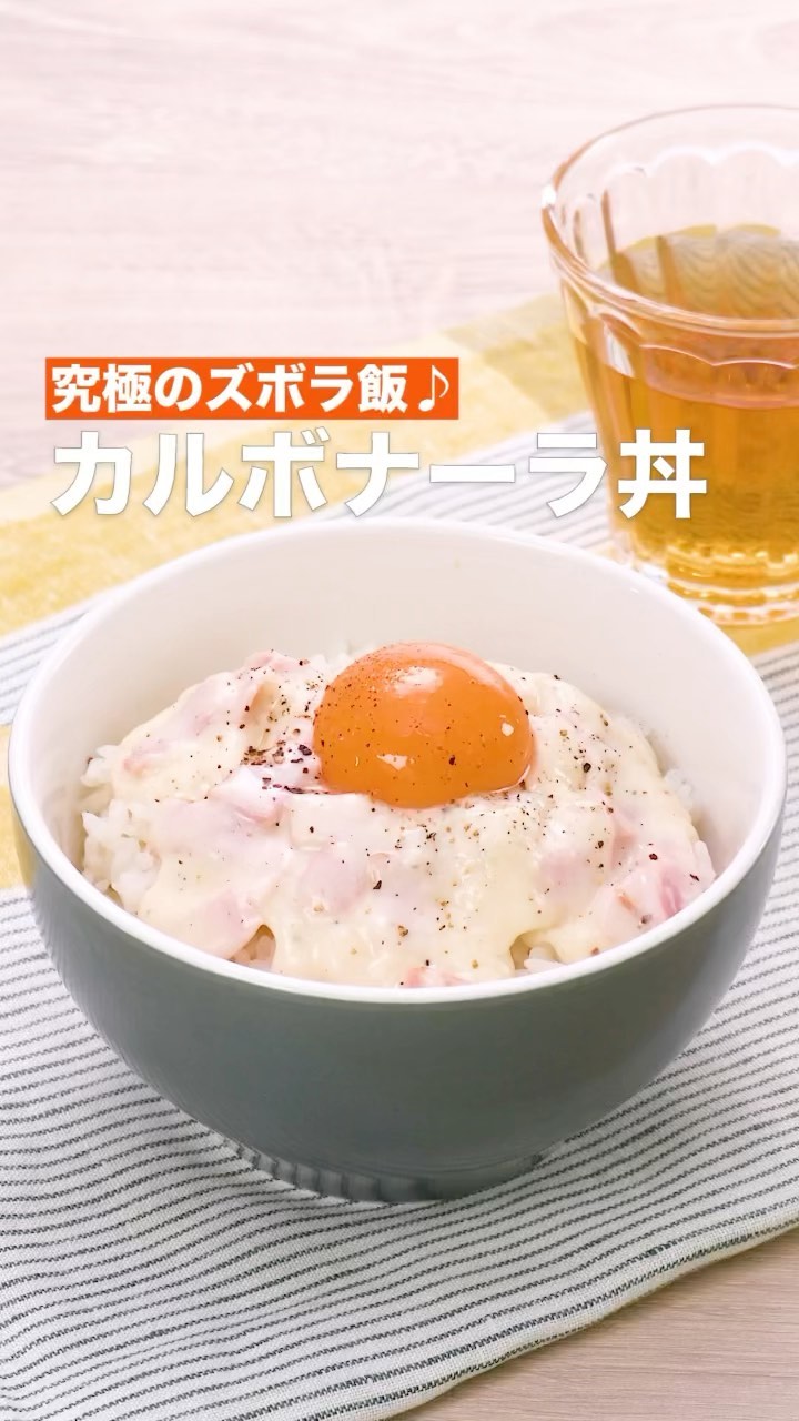 動画の詳細が気になる人はアプリで「カルボナーラ丼」で検索してみてくださいね♪