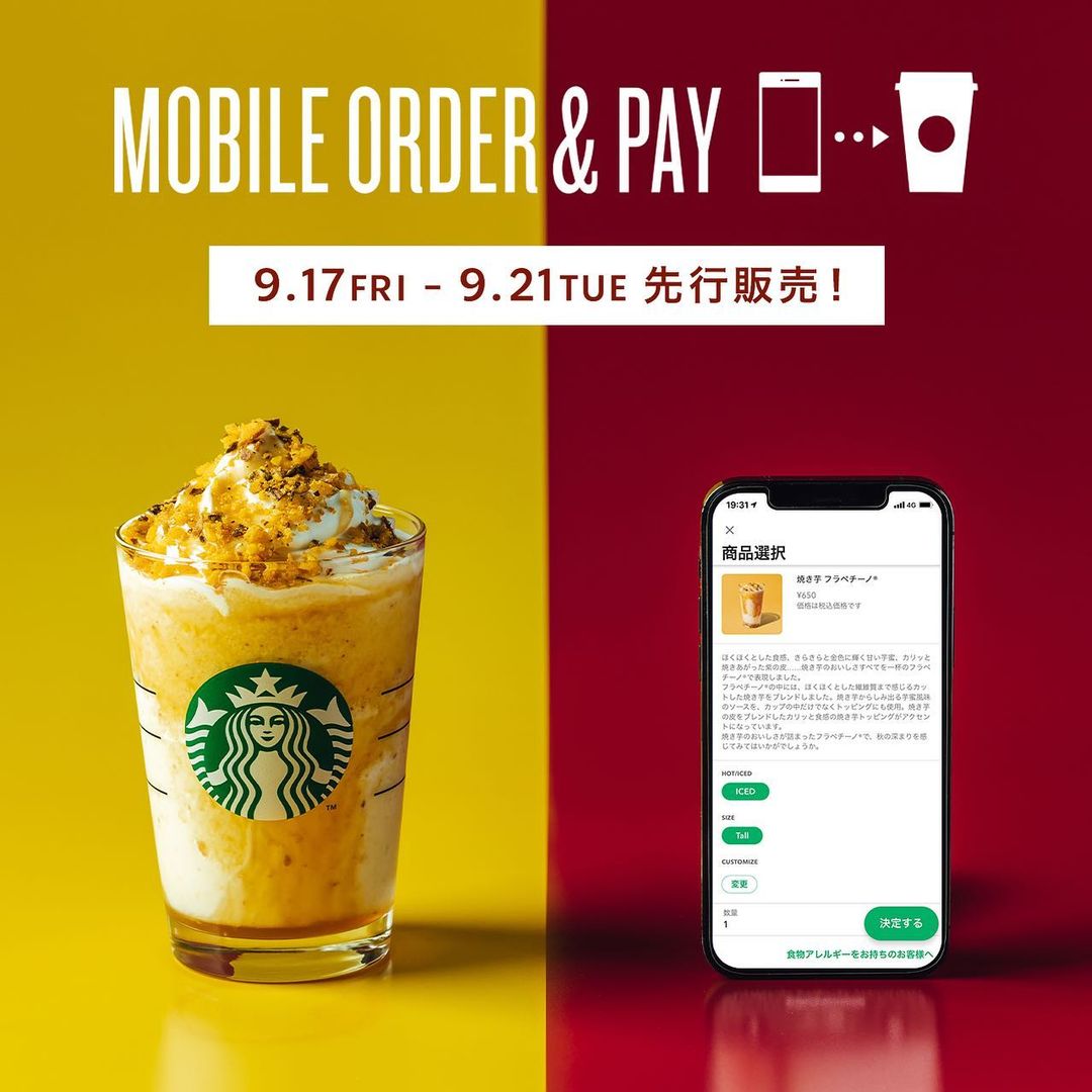 @Starbucks Starbucks: [9/17-21の5日間] スターバックス® リワード4周年を記念して、#モバイルオーダーアンドペイ 限定で発売前の『 #焼き芋フラペチーノ 』を先行でお楽し… 2021-09-17 🍠📲💛 [9/17-21の5日間] スターバックス® リワード4周年を記念して、#モバイルオーダーアンドペイ 限定で発売前の『 #焼き芋フラペチーノ 』を先行でお楽しみいただけます🍠🍂 詳しくはスターバックスの公式アプリ、公式サイトから。モバイルオーダーでひと足早く秋の深まりを感じてみませんか🥰 ※店舗の在庫には限りがございます。 対象商品が表示されていない場合は売り切れとなりますのでご了承ください。 #スターバックス #新作フラペチーノ Ciao, Nihon.