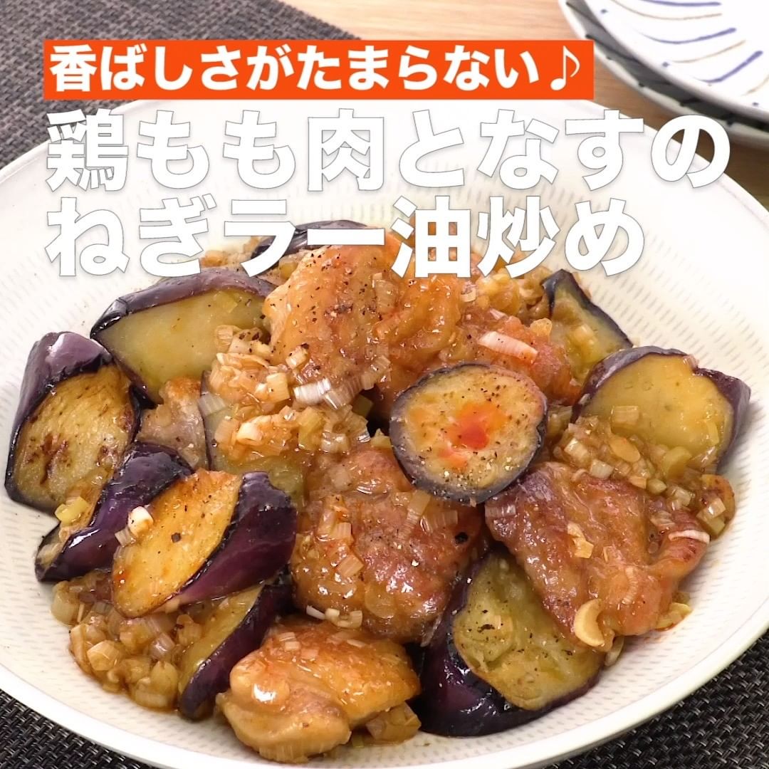 ⑦<香ばしさがたまらない♪鶏もも肉となすのねぎラー油炒め>