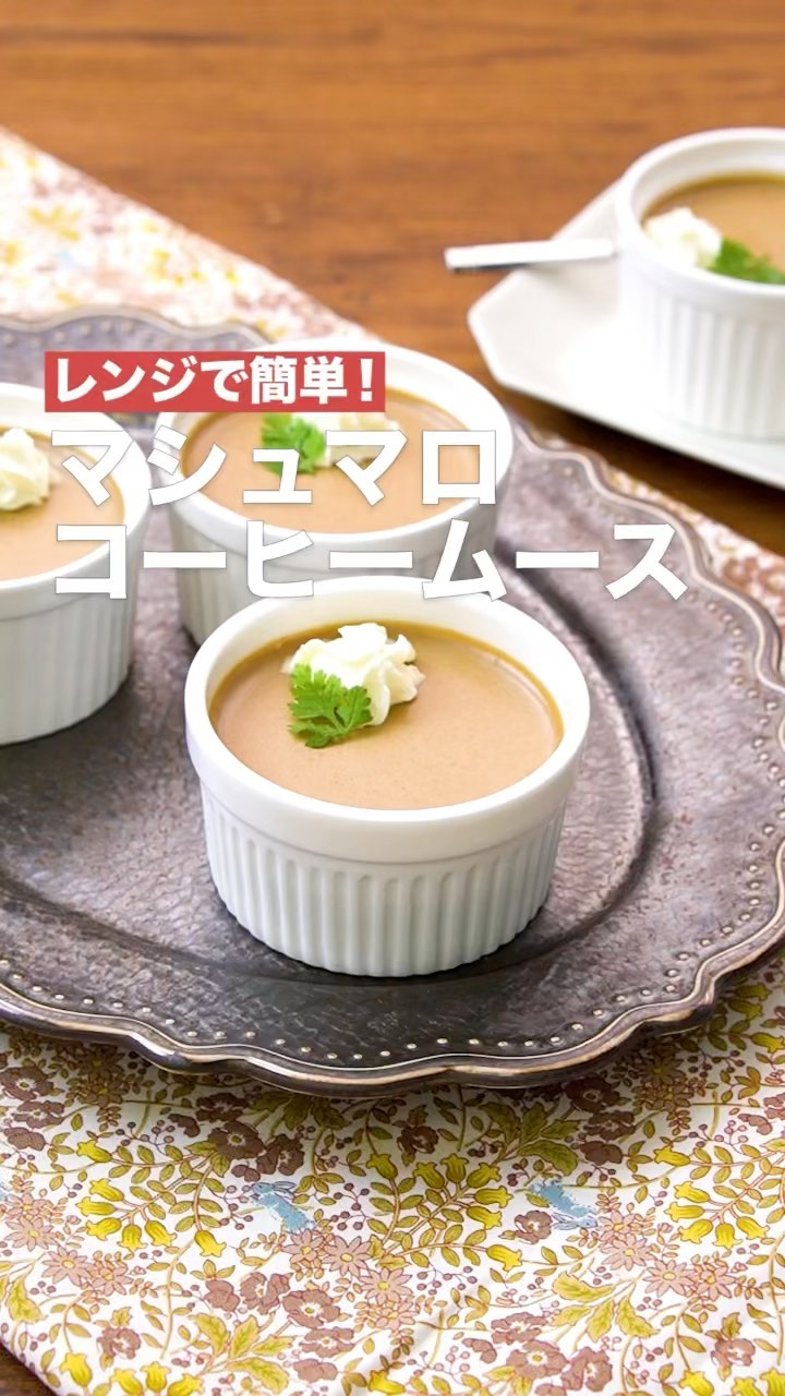 ふんわり甘いマシュマロムースとコーヒーのほろ苦さが相性抜群の組み合わせ!火をつかわずに、材料を混ぜていくだけでとっても簡単に作れます。マシュマロのおかげでふんわりなめらかな食感です。