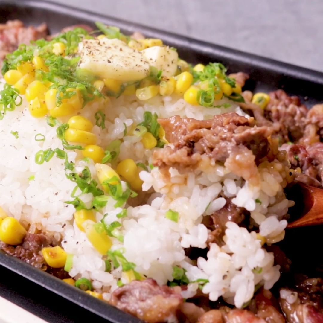 ①ホットプレートで ビーフのペッパー風味ライス