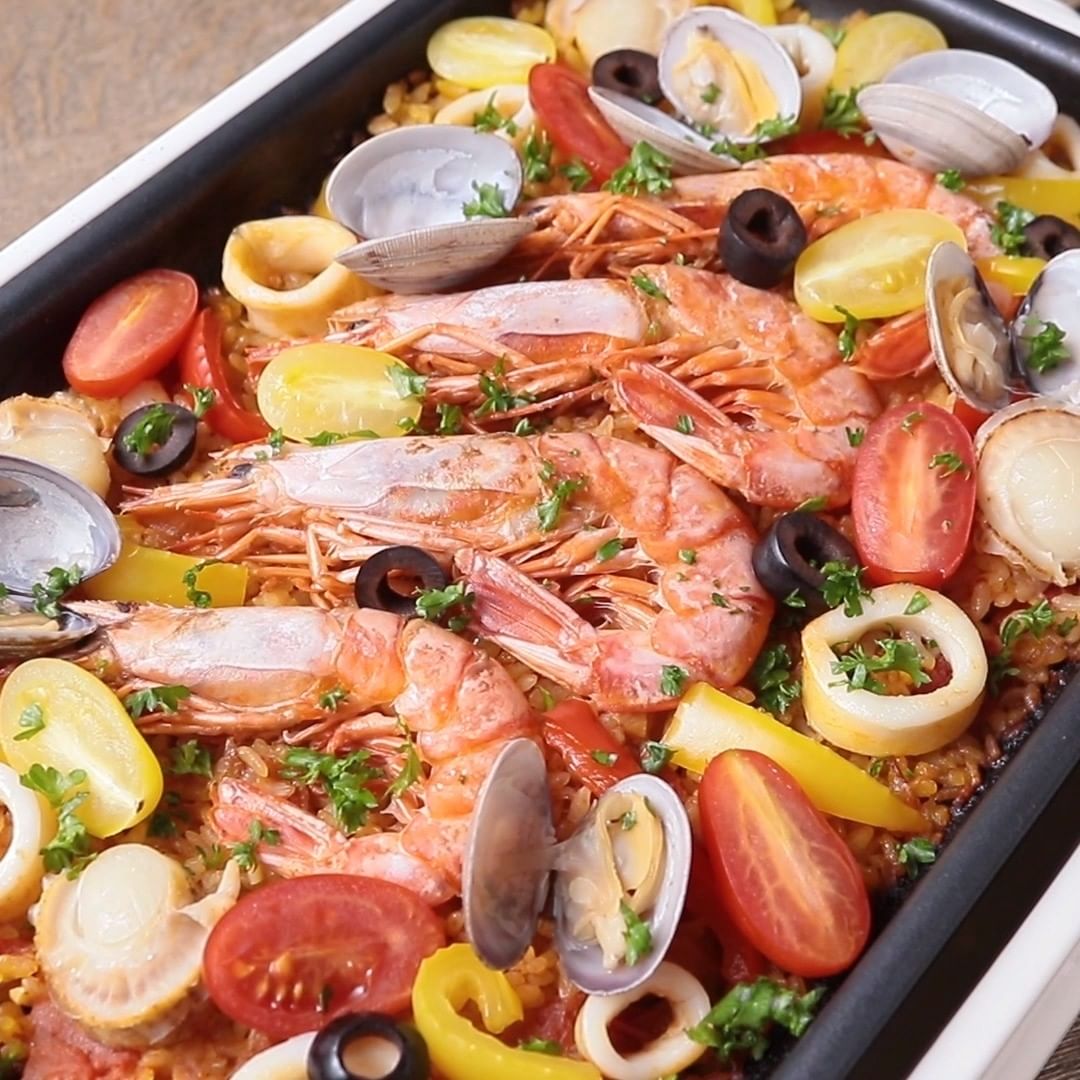 ③ホットプレートで作る シーフードパエリア